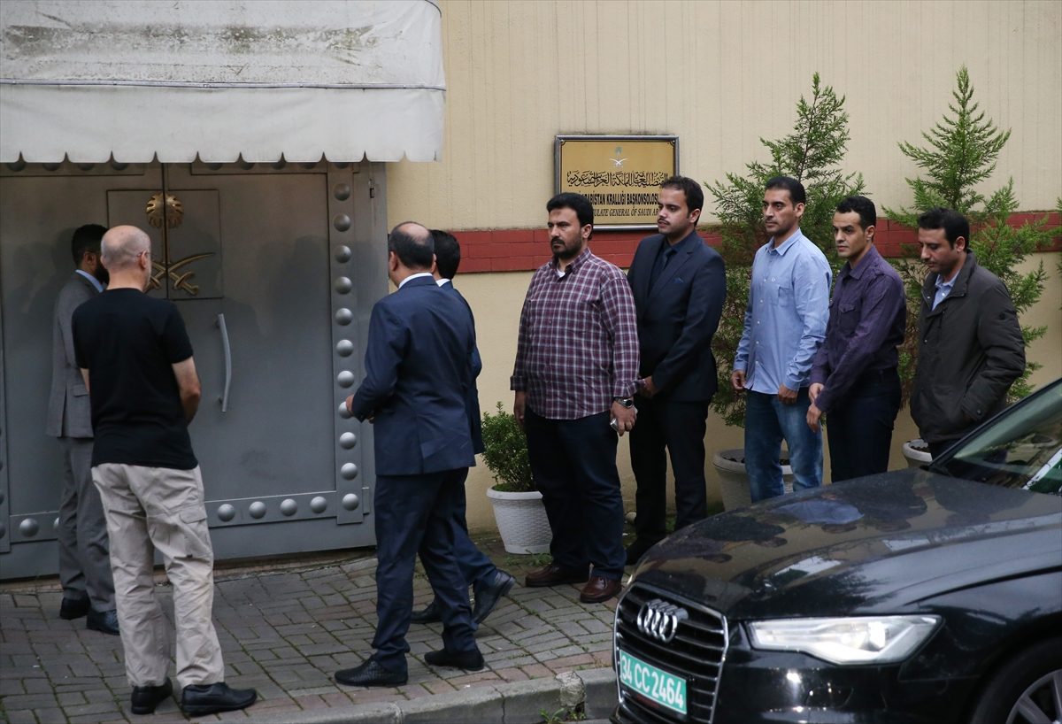[image_with_caption src=”https://stage.arabicpost.net/wp-content/uploads/2018/10/20181015_2_32880942_38120587_Web.jpg” caption=’لحظة وصول الوفد السعودي إلى قنصلية بلادهم في إسطنبول/ الأناضول ‘]