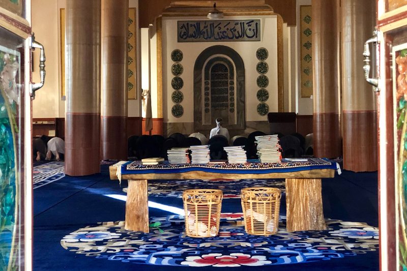 بعد انقضاء الصلاة، يعود بعض من أولئك الرجال أدراجهم عبر أزقة ماميتشانغ الضيقة وسط متاهة من الجدران المبنية من الطوب اللبن تفضي في آخرها إلى فناء كبير تصطف فيه السيارات والدراجات النارية. هناك، تحت السماء الصافية وتحت علم الصين الجلي، يفرش الرجال ثلاث سجادات ذات لون أزرق ملكي يبلغ طول الواحدة منها ستة أمتار. ثم يخلع الاثنا عشر رجلاً والفتاة الصغيرة أحذيتهم ويولون وجوههم قبل الغرب باتجاه مكة. يقع «المسجد المنزلي» خاصتهم بجوار الفناء، وهو مبنى سكني ليست له معالم مميزة، وأبوابه موصدة بجنازير ومشمعة ومغلقة بشريط لاصق رسمي مكتوب عليه «مكتب الشؤون العرقية والدينية».