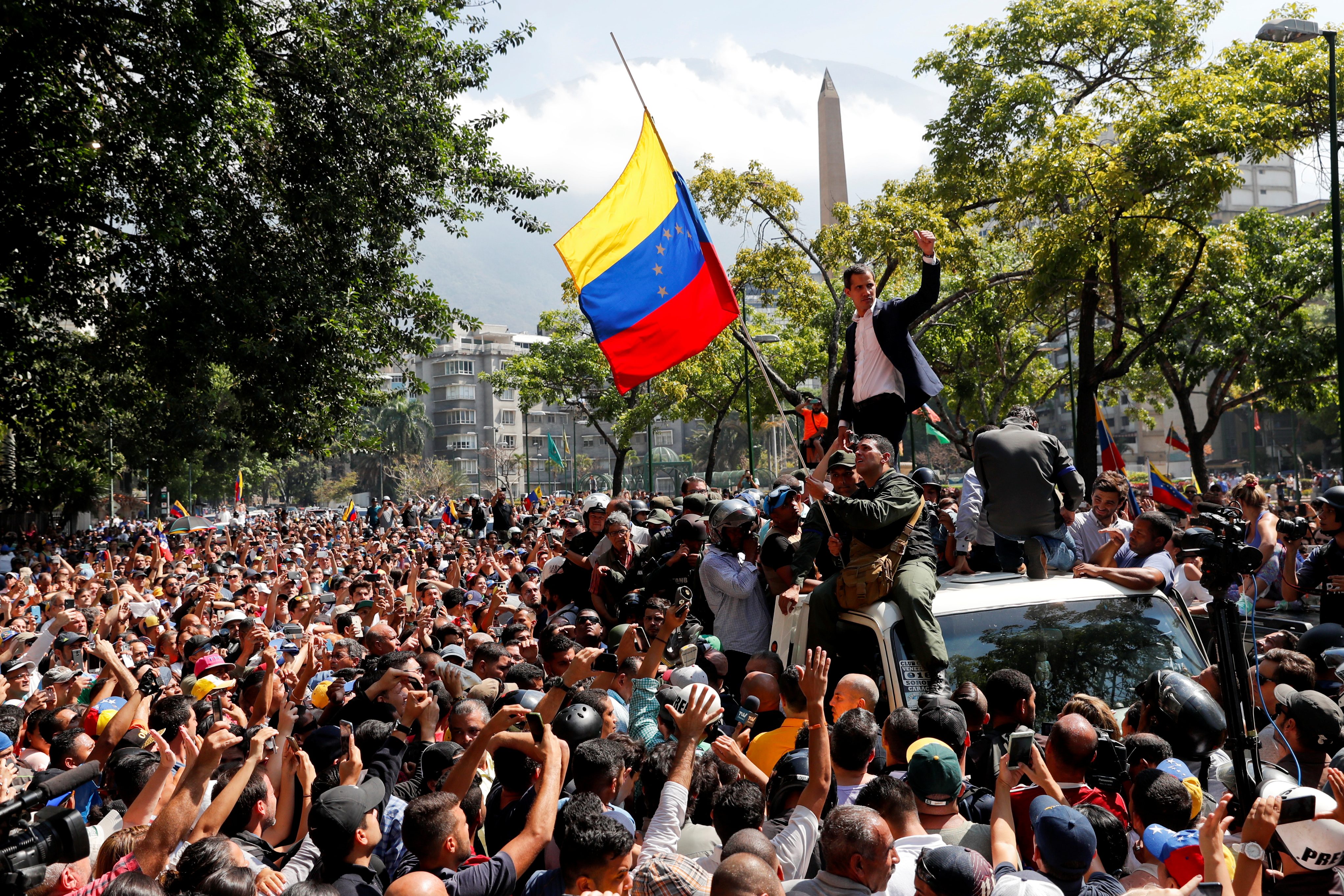 خلفية: أعلنت الحكومة الفنزويلية، الثلاثاء 30 أبريل/نيسان 2019، أن مجموعة صغيرة من العسكريين مرتبطة بالمعارضة حاولت تنفيذ انقلاب. واتهمت كراكاس واشنطن بدعم زعيم المعارضة وتحريضه على الانقلاب.