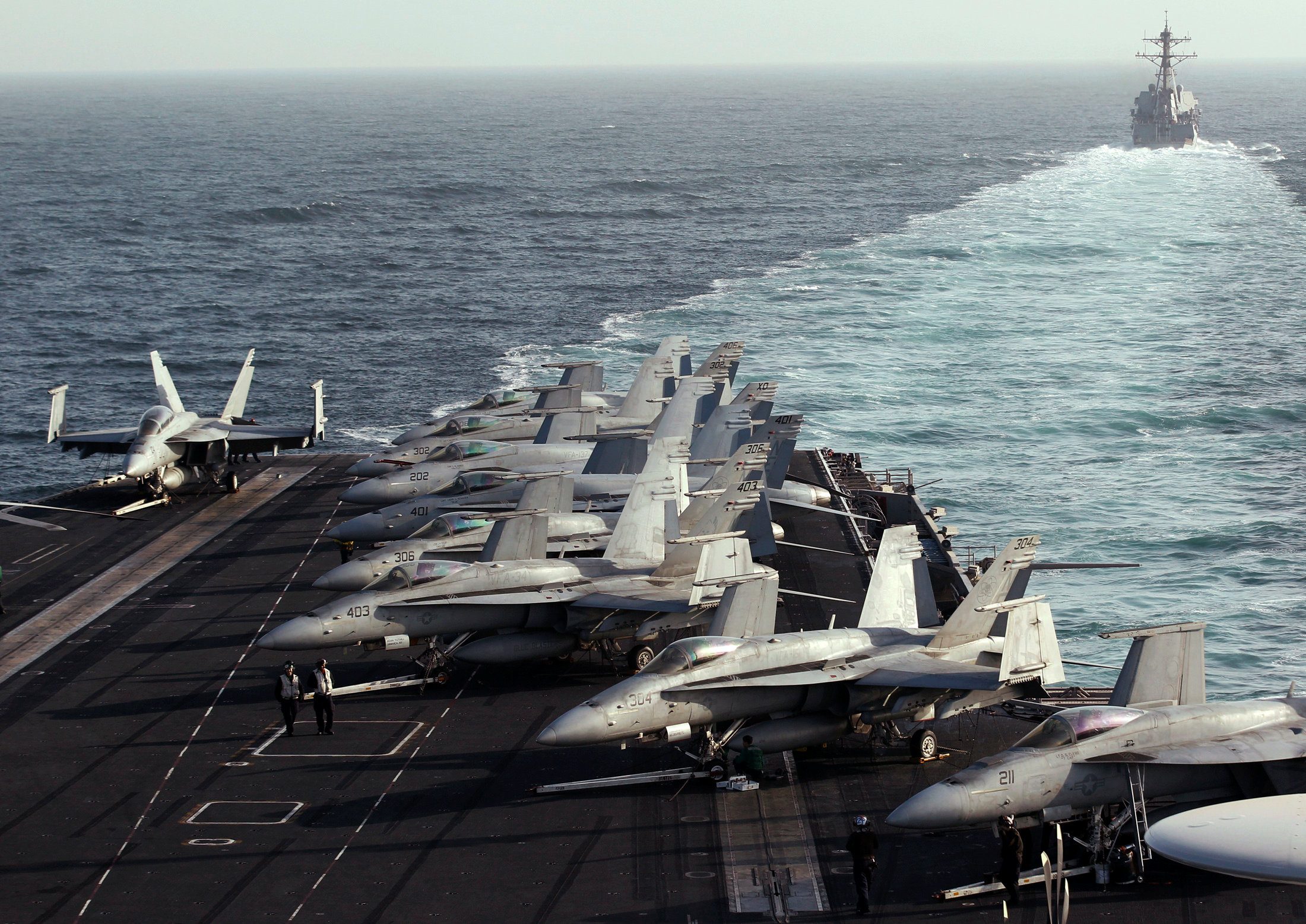 ولم يوضح نائب الأميرال جيم مالوي، قائد الأسطول الأمريكي الخامس المتمركز في البحرين، ما إذا كان سيرسل المجموعة الهجومية حاملة الطائرات أبراهام لينكولن إلى الممر المائي الاستراتيجي الواقع قبالة إيران، والذي يمر من خلاله خُمس النفط المستهلك عالمياً.
