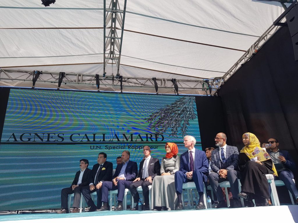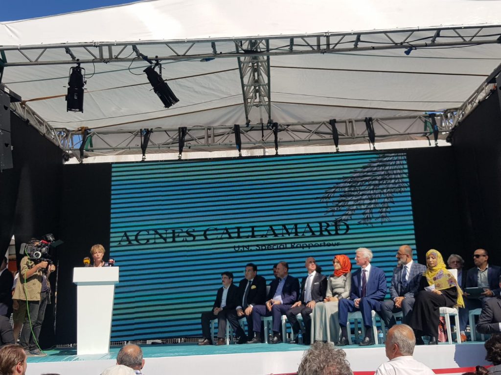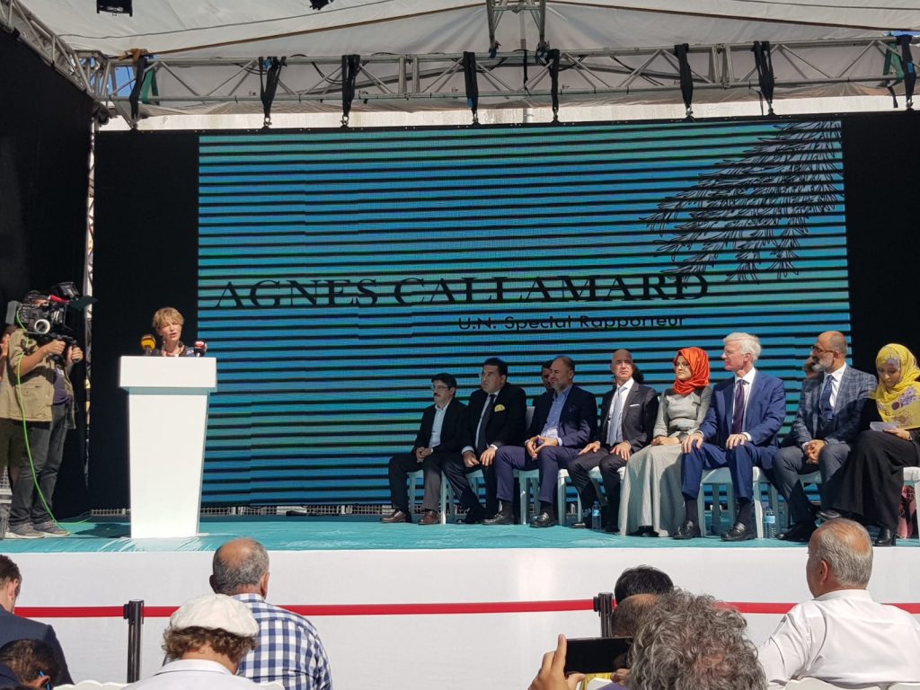 أغنيس كالامار، مقررة الأمم المتحدة الخاصة بالإعدام خارج نطاق القضاء تلقي كلمة أثناء إحياء ذكرى قتل خاشقجي