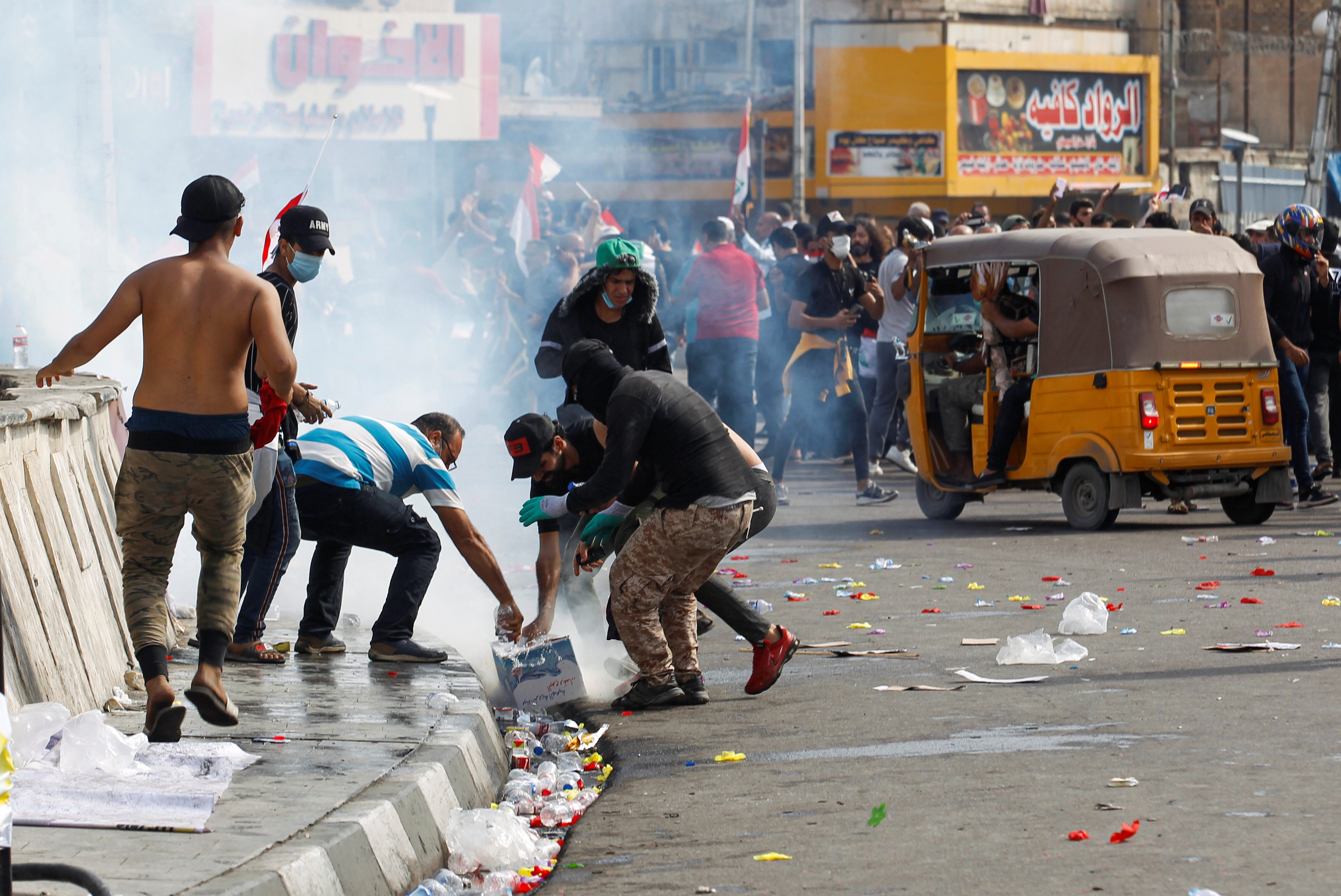 قال المرصد العراقي لحقوق الإنسان (جهة رسمية تابعة للبرلمان)، الجمعة ، إن متظاهرين اثنين قُتلا وأُصيب العشرات جراء الاختناق بالغاز المسيل للدموع في بغداد.