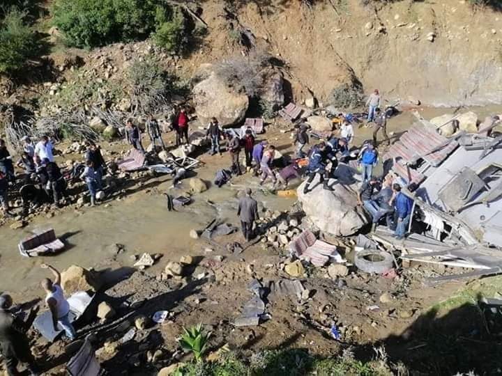 الحادثة حصلت إثر سقوط الحافلة التابعة لإحدى وكلات السفر الخاصة من أحد المرتفعات، وكانت تُقل 43 شخصاً في إطار رحلة سياحية ترفيهية
