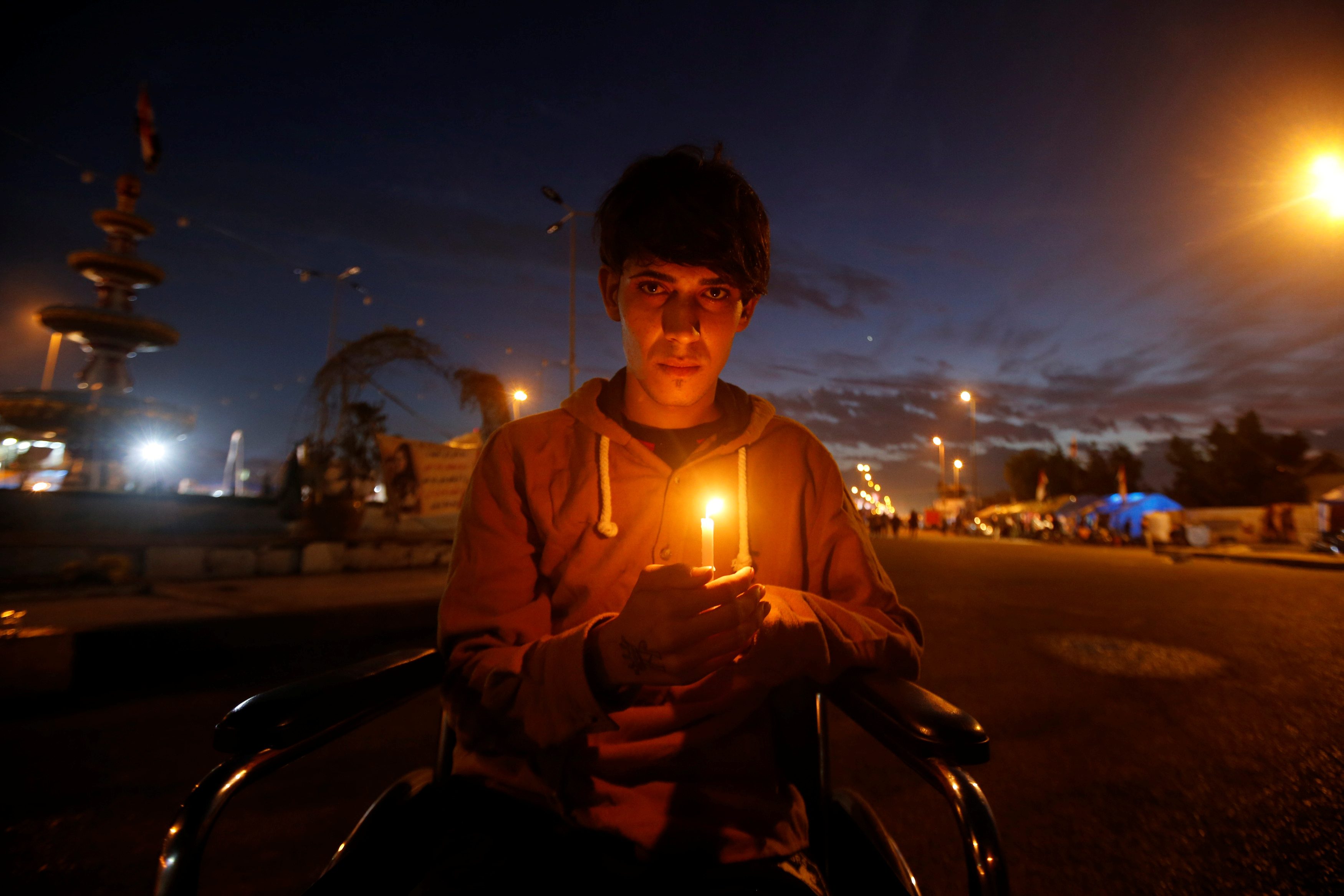 هادي وأحمد، شابان عراقيان أحدهما بُترت ساقه والثاني كسرت يده يصران على مواصلة المشاركة في الاحتجاجات