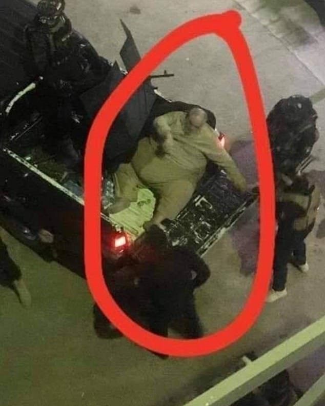 صُوِّر “شفاء النعمة”، الذي لم يكن من الممكن نقله في سيارة شرطةٍ، وهو يجلس أمام شرطيٍّ على مدفعٍ رشاشٍ في صندوق شاحنةٍ مفتوحٍ، ليلة الخميس 16 يناير/كانون الثاني. ومن غير الواضح كيف أُخرج الرجل، البالغ وزنه على الأقل نحو 136 كيلوغراماً، من مخبئه.