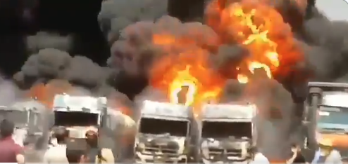 تسجيل مصور للحادث نشرته وكالة ميزان، أظهرَ أعمدة من الدخان الأسود الكثيف تتصاعد في السماء.