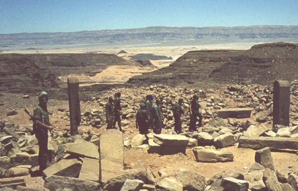 صحفي يدعى عيدو ديسنتشيك قال إنه كان شاهداً على ما جرى، وقال إنه في أحد الأيام تلقى هو وزملاؤه أمراً بالذهاب إلى سرابيط الخادم، وهو معبد أثري فرعوني؛ وذلك لتأمين وزير الدفاع دايان، خلال جولته بالمنطقة.