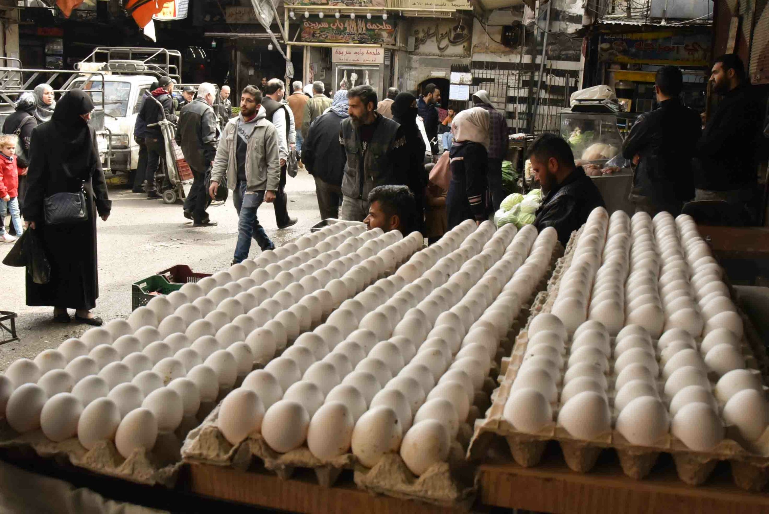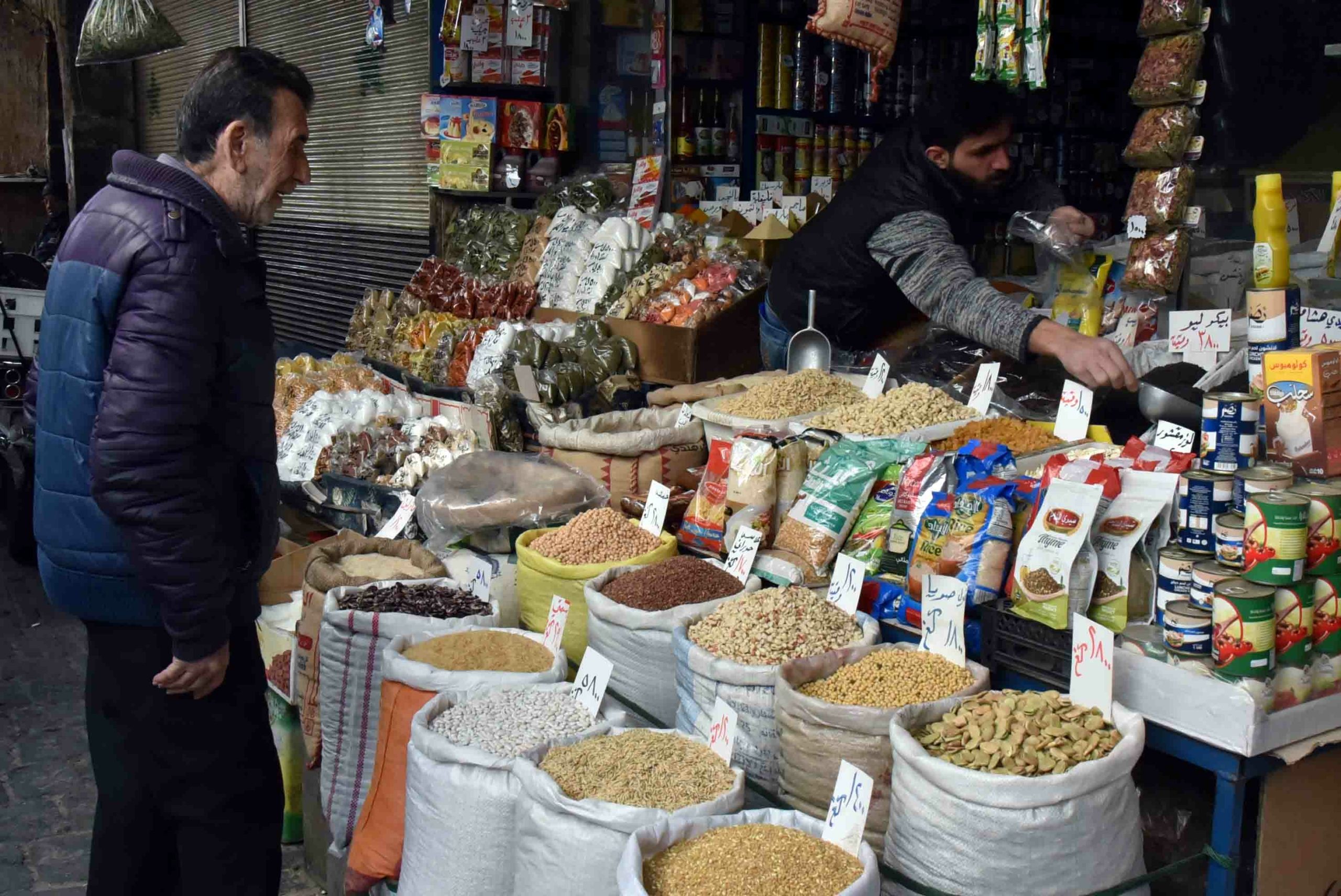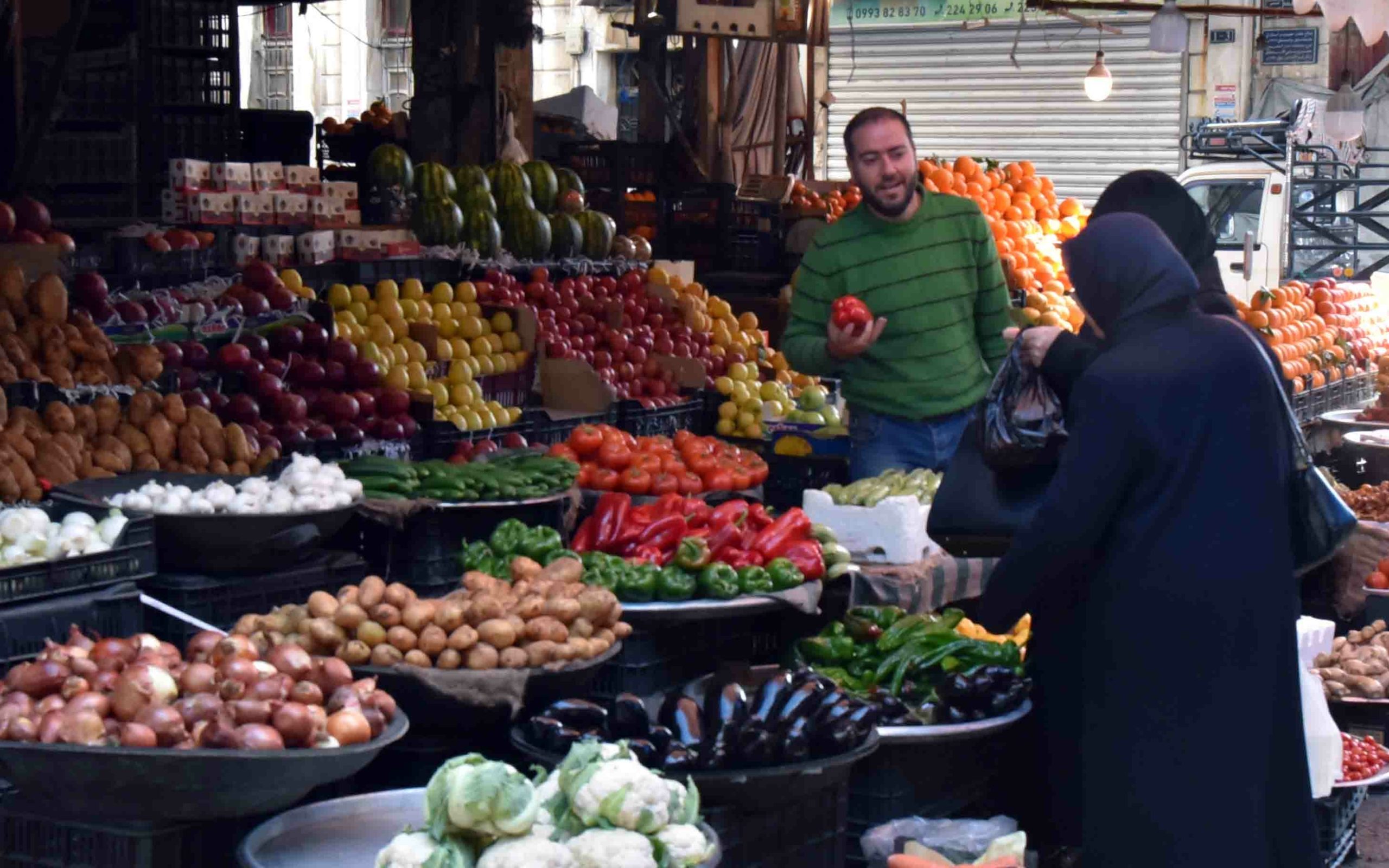 لا تفتقد الأسواق السورية في المناطق الموالية للنظام وخصوصاً في العاصمة دمشق والمناطق الموالية لها لكل أنواع السلع، من خضر وفواكه، فالباعة يُعرضون جميع الأصناف، لكن الإقبال قليل، فالمواطن يدخل السوق ويعود بكيس صغير به بضع كيلوغرامات بعد “حرب” مساومات خاضها مع التجار.