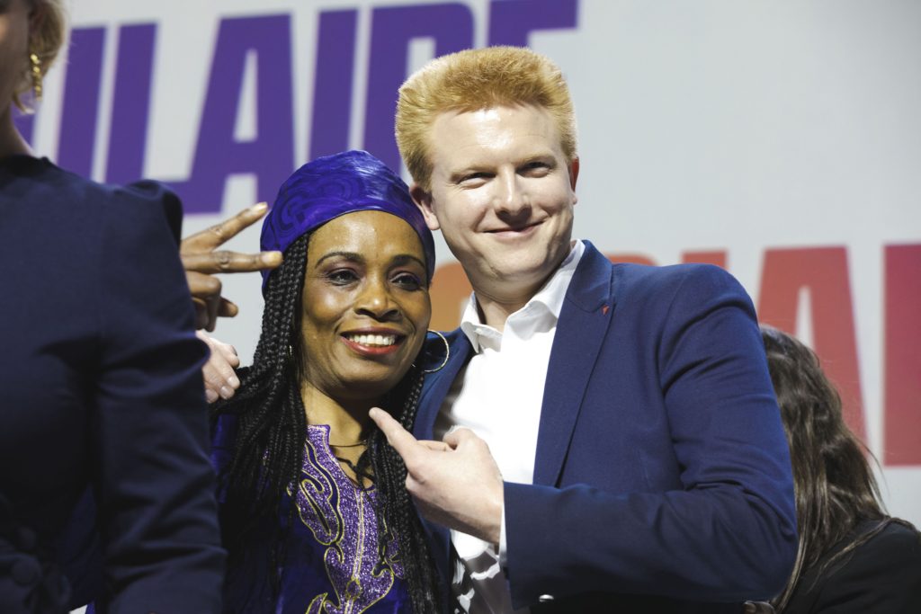 The legislative convention of the New Popular Ecological and Social Union took place at the Dock Pullman, in Aubervilliers, Seine-Saint-Denis. This event marked the start of the campaign to elect a majority of deputies to the National Assembly and bring Jean-Luc Melenchon to Matignon. Aubervilliers, 2022/05/07. Photograph by Virginie Haffner / Hans Lucas. La convention legislative de la Nouvelle Union populaire ecologique et sociale s est deroulee aux Dock Pullman, a Aubervilliers, en Seine-Saint-Denis. Cet evenement a marque le depart de la campagne pour faire elire une majorite de deputes a l Assemblee nationale et porter Jean-Luc Melenchon a Matignon. Aubervilliers, le 2022/05/07. Photographie de Virginie Haffner / Hans Lucas.