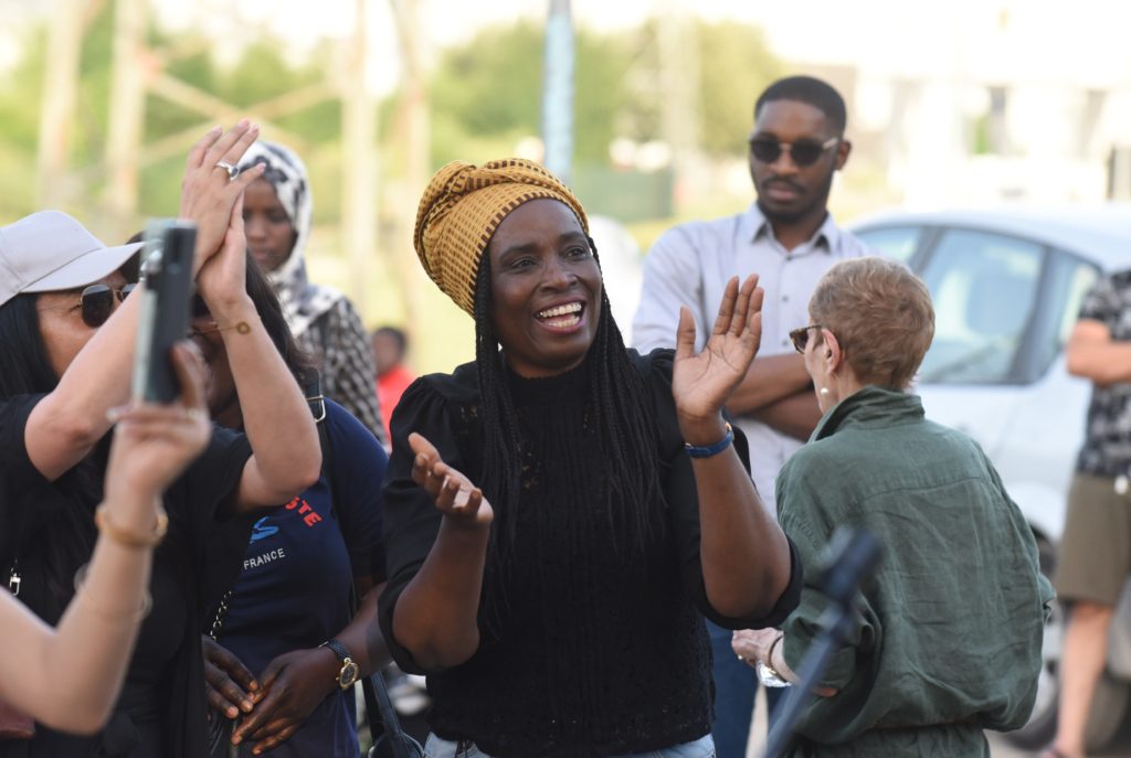 June 17, 2022 – Chevilly-Larue, France: Former chambermaid Rachel Keke, a candidate for the new left-wing alliance Nupes, holds her last campaign event two days before the legislative election second round. Keke rose to prominence after leading one of the longest hotel strikes in French history against the unpaid overtime and poor working conditions of outsourced cleaning staff. L ancienne femme de chambre Rachel Keke fait campagne pour les legislatives dans le Val-de-Marne. La candidate de la Nupes fait face a l ex-ministre des Sports Roxana Maracineanu. A deux jours du second tour des legislatives, Keke participe a un barbecue populaire et tient une reunion publique devant ses partisans dans le parc de la Coulee verte a Chevilly-Larue.No Use France.