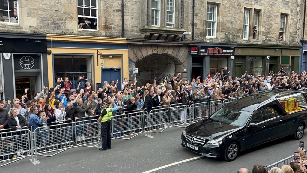 ووقف عشرات الآلاف من المعزين لساعات في شوارع العاصمة الاسكتلندية للتعبير عن احترامهم للملكة قبل وداعها الأخير.
