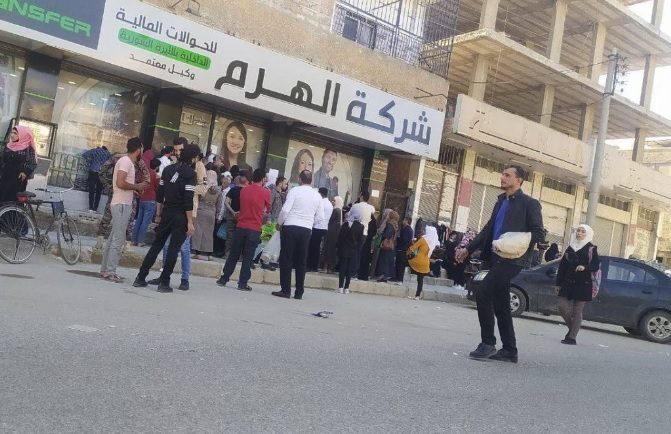 يأتي ذلك، بينما تداول مستخدمو مواقع التواصل الاجتماعي صورة تظهر مجموعات من الناس المحبطين ينتظرون حوالاتهم في فرع ويسترن يونيون الرسمي في اللاذقية.