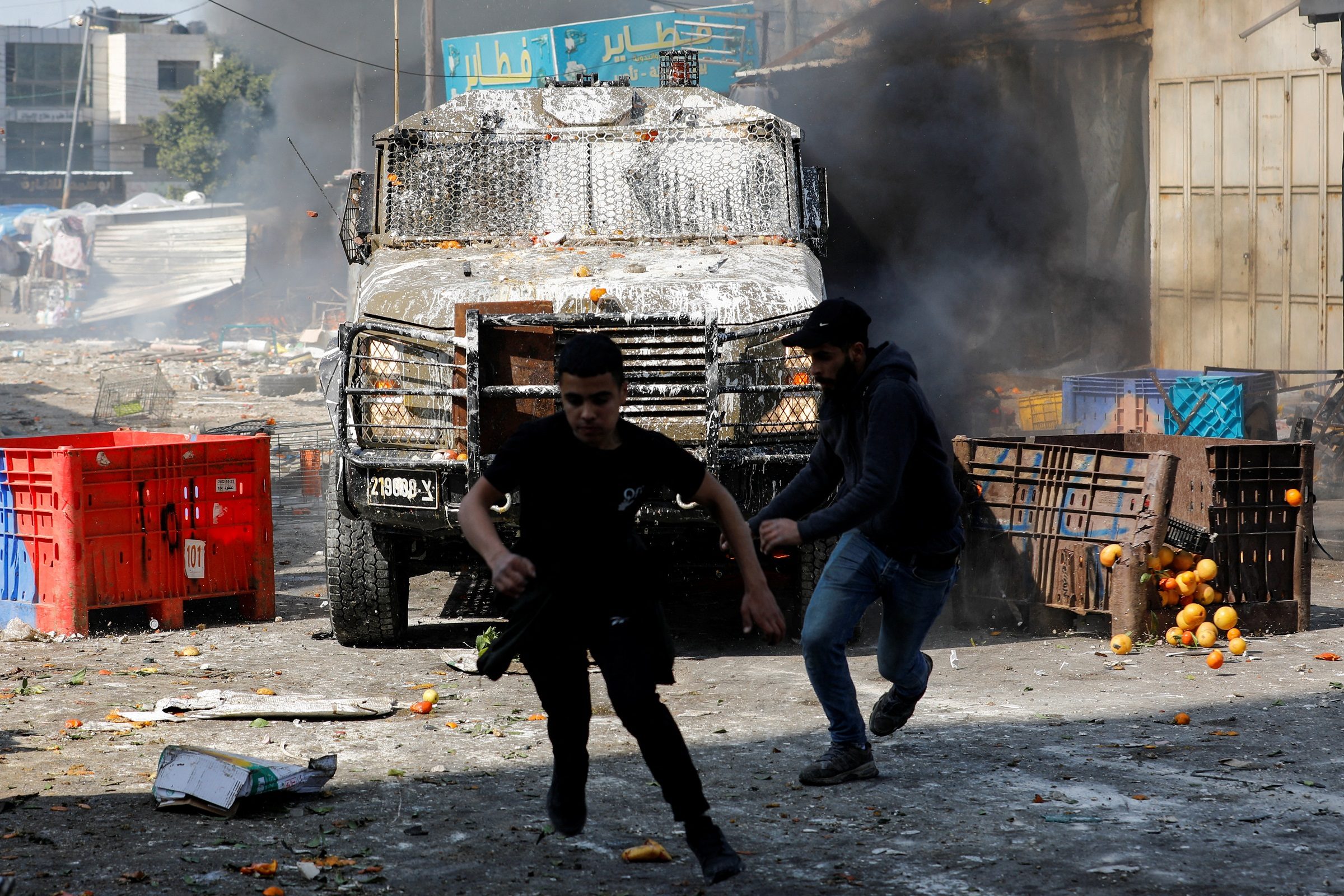 مواجهات خلال اقتحام قوات الاحتلال مدينة نابلس/ رويترز