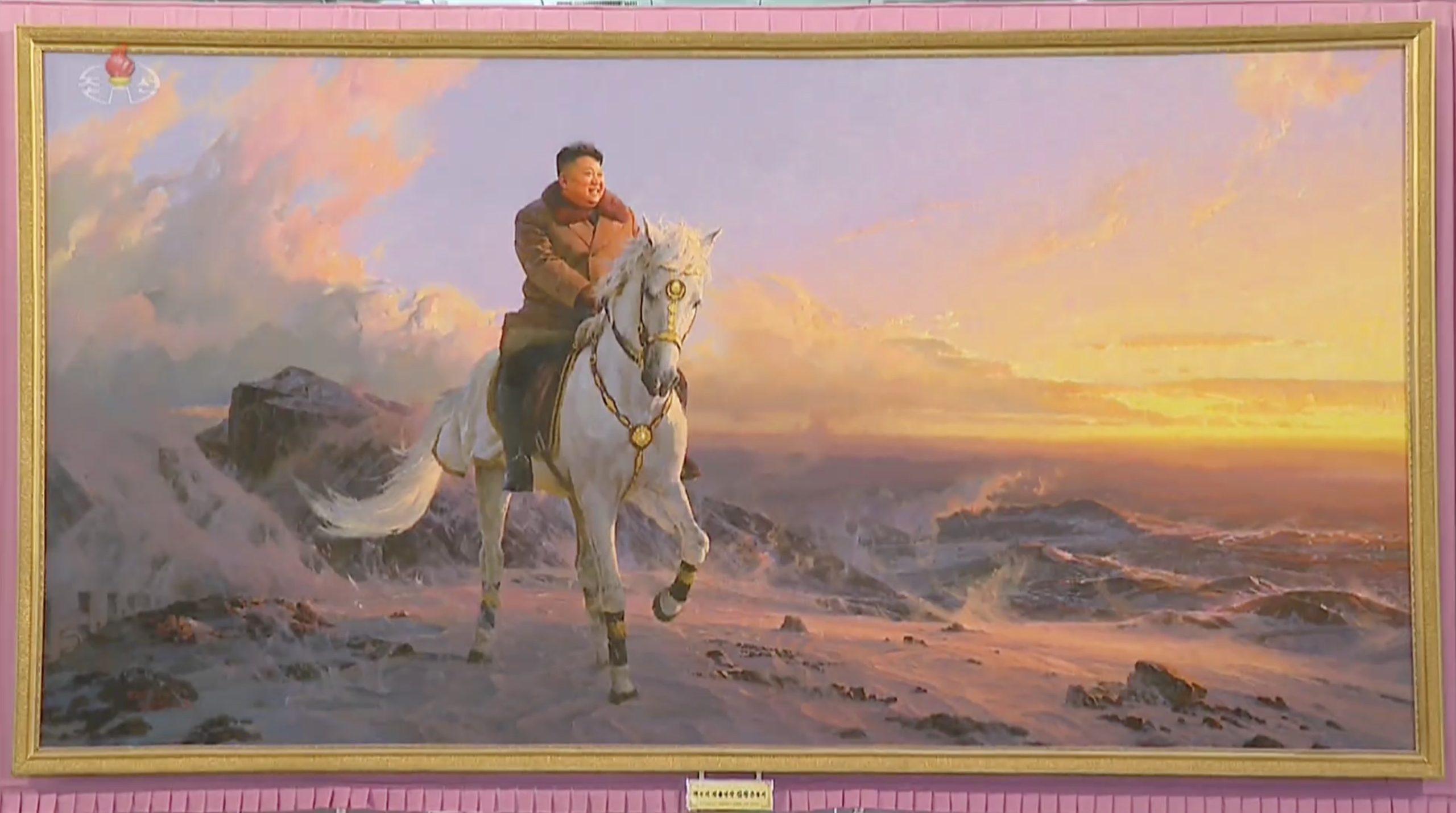 الصحيفة أشارت إلى أنه في إحدى الصور يظهر كيم، ربما أقل بدانة إلى حد ما مما هو عليه في الحياة الواقعية، وهو يرتدي معطفاً أسود مع طوق من الفرو، ويمتطي حصاناً أبيض. يبتسم ويبدو وجهه وكأنه يضيء مع غروب الشمس الذهبية وراءه.