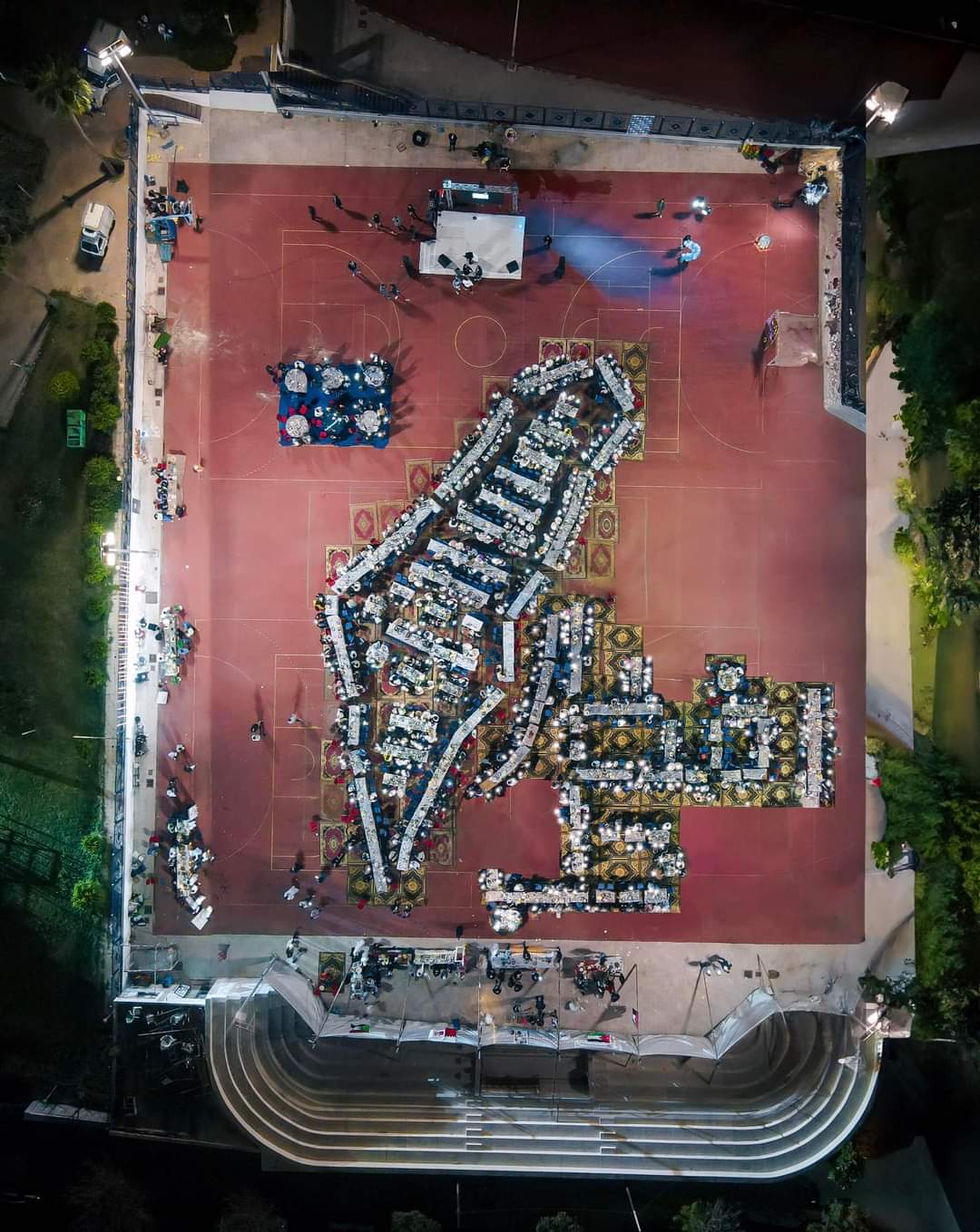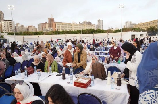 في خطوة تضامنية مع الشعب الفلسطيني، نظم اتحاد طلاب كلية الطب جامعة الإسكندرية (شمال القاهرة)، الأحد 31 مارس/آذار 2024، حفل الإفطار السنوي، داخل استاد الجامعة على شكل خريطة فلسطين.