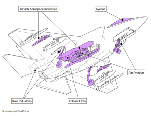 وتصنع شركة Fokker Elmo ما يمثل 40% من نظام الربط الكهربائي البيني السلكي لمحرك F135 المستخدم في الطائرة.