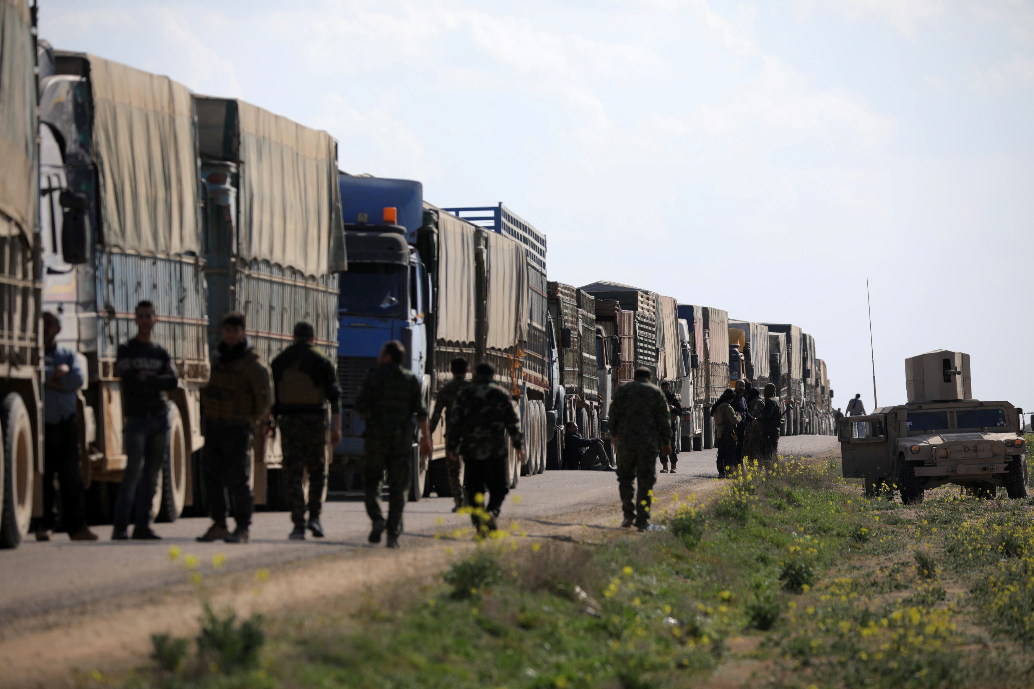 ورافقت تلك الشاحنات شاحناتٌ مسلحة تابعة لقوات سوريا الديمقراطية المدعومة من الولايات المتحدة.