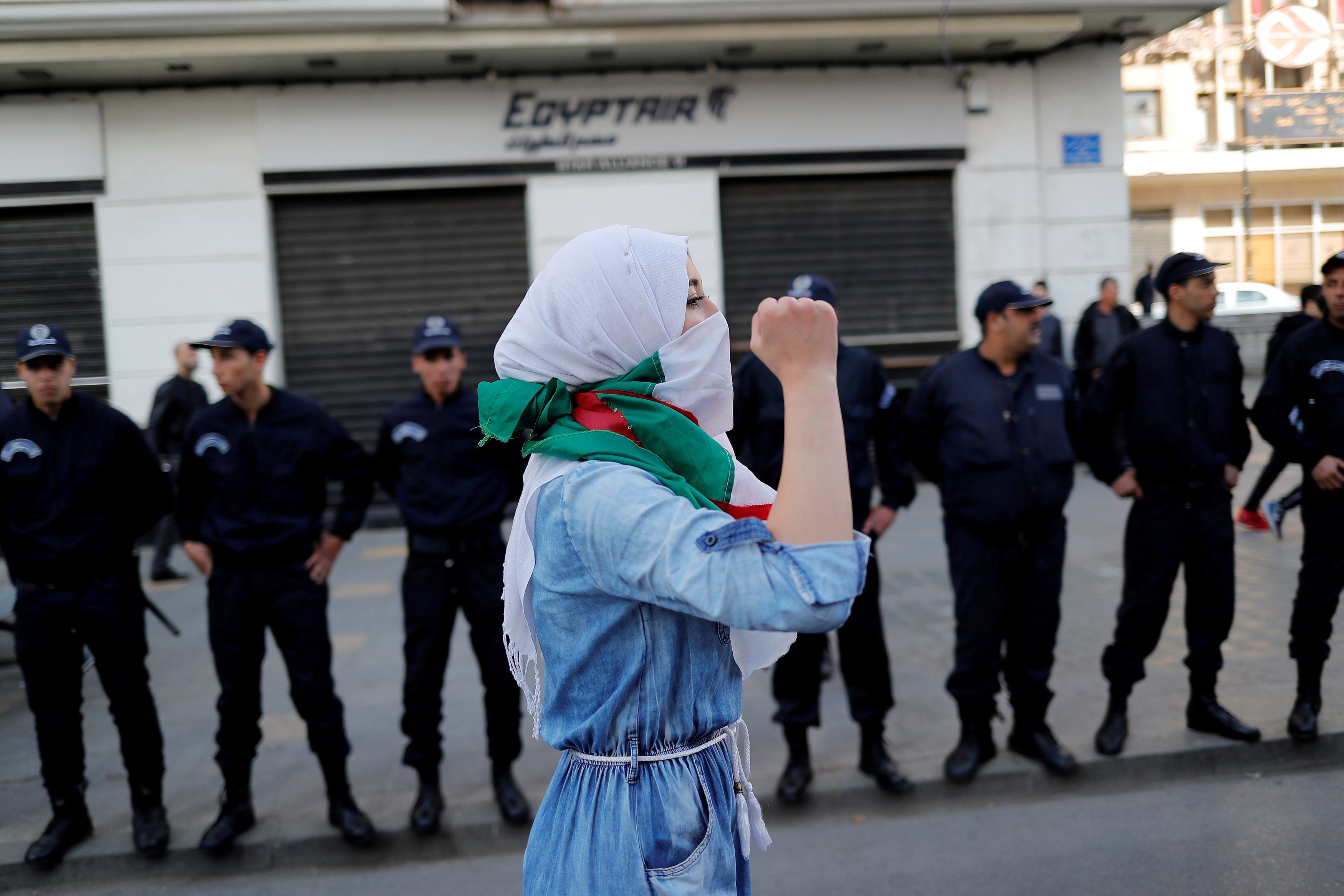 FILE PHOTO: A student protests against Algeria's President Abdelaziz Bouteflika, in Algiers, Algeria March 10, 2019. REUTERS/Zohra Bensemra/File Photo