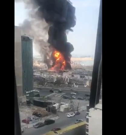 حريق ضخم يشتعل في مرفأ بيروت.. حالة من الذعر والخوف تصيب سكان العاصمة (صور وفيديو)