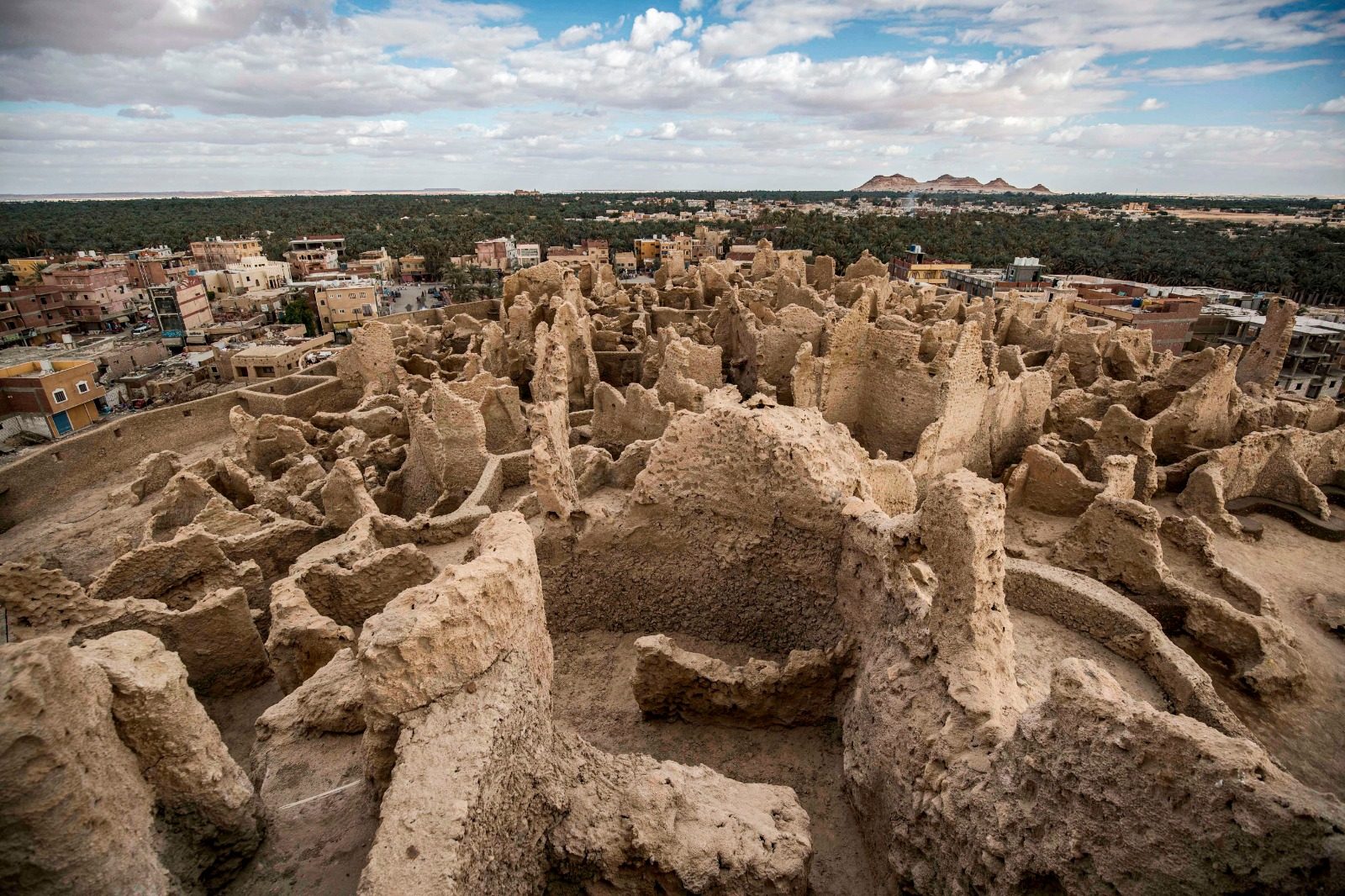 بحلول القرن التاسع عشر، وصف المؤرخون الأوروبيون الذين زاروها لأهميتها التاريخية، الواحةَ بأكملها بأنها خلية نحل شاسعة من المباني والمغارات والبيوت الطينية لسكان المنطقة من البربر الليبيين والسودانيين، بحسب Britannica.