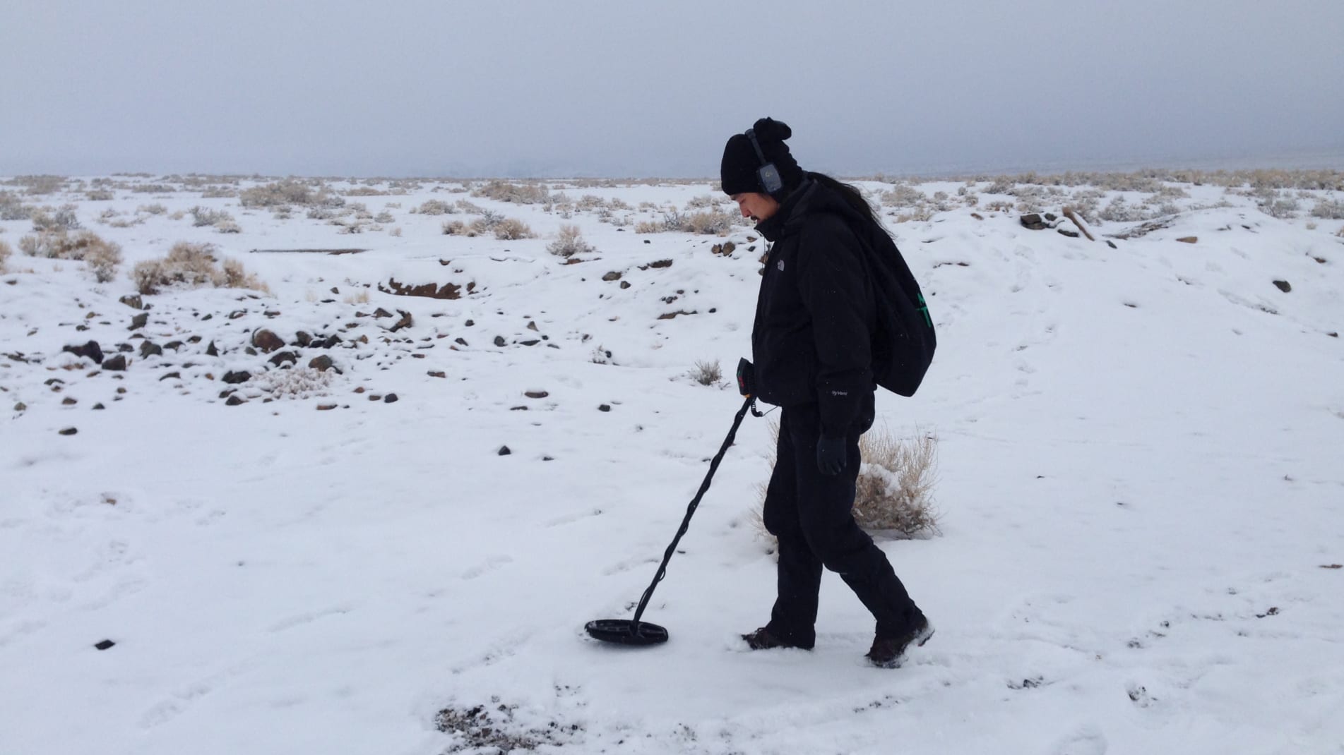 يستخدم تشانغ بو جهاز كشف المعادن للبحث عن النيازك في ألتاي ، وهي مدينة في شينجيانغ ، الصين/ تشانغ بو