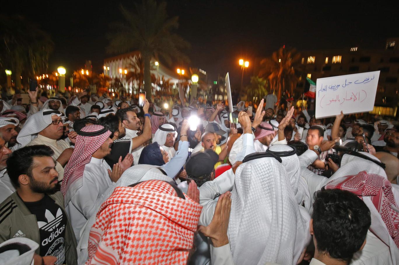 وأنذرت أسابيع من الاحتجاجات المناهضة للحكومة في العراق ولبنان باندلاع مظاهرات نادرة الحدوث في الكويت الأربعاء، 6 نوفمبر/تشرين الثاني، ضد تفشي الفساد الحكومي وسوء الإدارة. إذ استجاب الآلاف لدعوة الخروج في احتجاجات سلمية مساء أمس، في “ساحة الإرادة”، أمام مقر المجلس التشريعي الكويتي، وسط وجود أمني كثيف. وطالب المحتجون كلاً من حكومة رئيس الوزراء الشيخ جابر المبارك الصباح والبرلمان بالاستقالة.