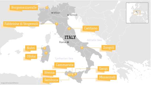 تقع في صقلية، بالقرب من باليرمو، تلك المدينة التي تأخذ شكل الحلزون كانت واحدة من أوائل المدن التي باعت بيوتاً في مقابل دولار واحد تقريباً عام 2011، وقد أصبحت مؤخراً أكثر المدن نجاحاً في ذلك.
