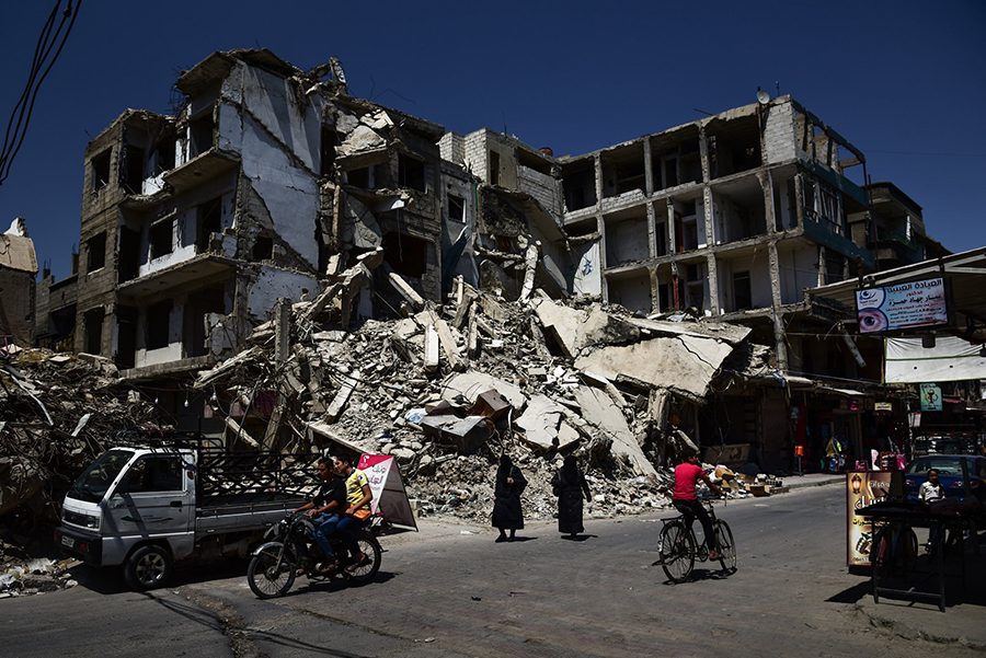 في عام 2012، مزَّق القتال بين قوات المعارضة بشرقي حلب وقوات النظام في غربي حلب المدينة إلى قسمين. وحين استردَّها النظام أواخر عام 2016، بعد أربع سنوات من سفك الدماء بلا توقف، كان شرقي حلب شبه مدمر بالكامل. ومال زخم الحرب إلى جانب النظام بشكل لا رجعة فيه.
