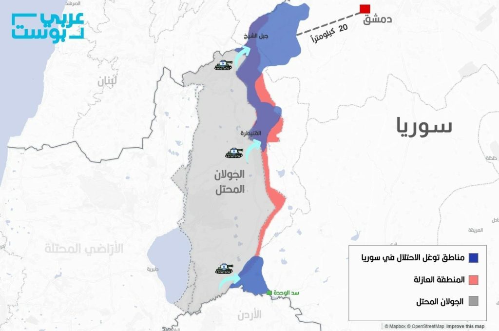 المناطق التي توغلت بها “إسرائيل” في جنوب سوريا بعد سقوط نظام الأسد في ديسمبر 2024 – عربي بوست