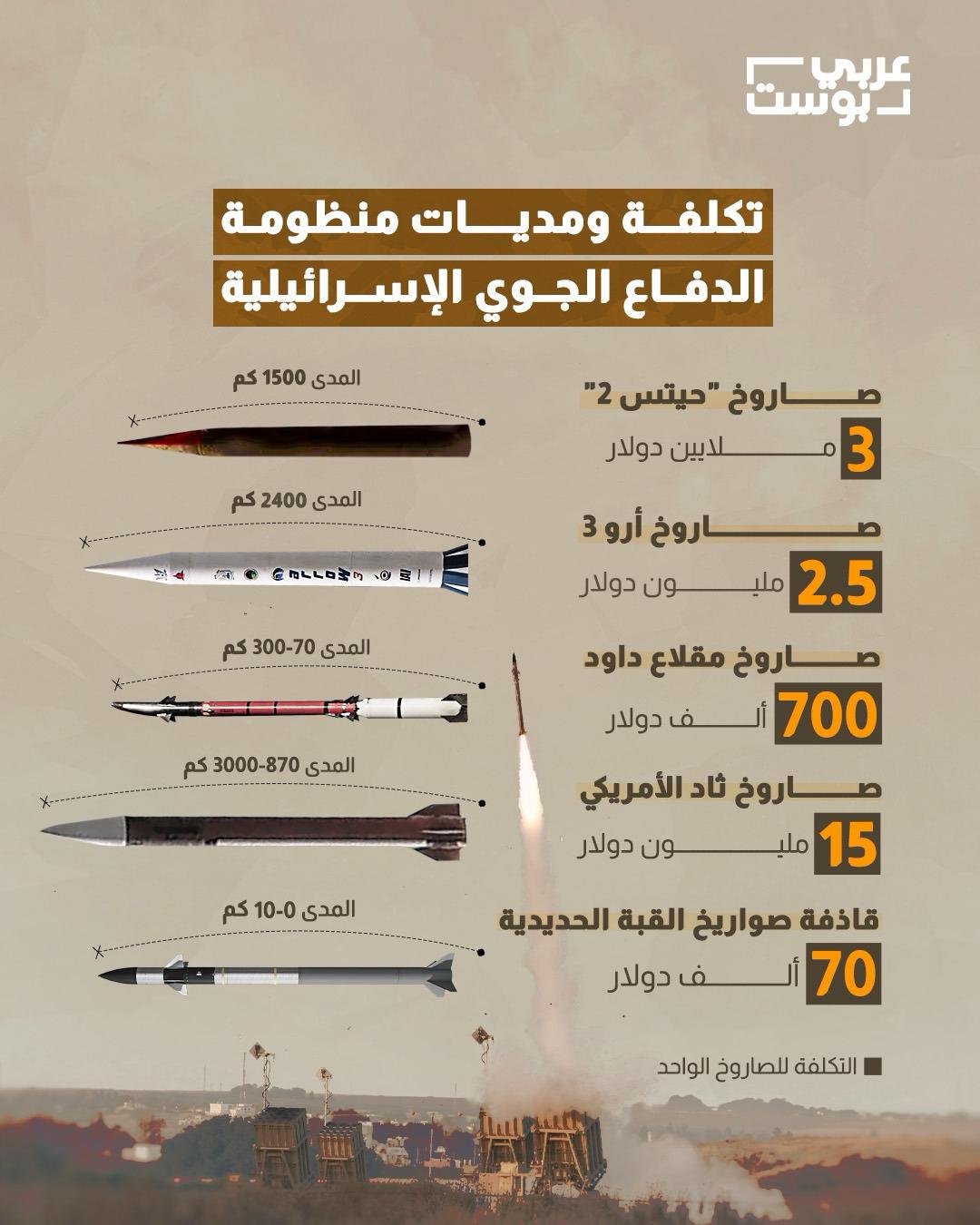 ما تكلفة اعتراض منظومة الدفاع الجوي الإسرائيلية للصاروخ الواحد؟