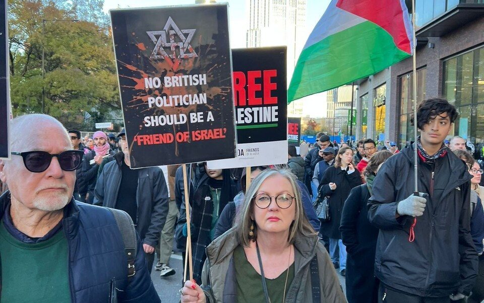 في الشهر نفسه، نشرت الشرطة البريطانية صورة امرأة تبحث عنها، وكانت السيدة المشاركة في مظاهرات بريطانيا المؤيدة لفلسطين تحمل لافتة تظهر نجمة داوود ملفوفة حول الشعار النازي للصليب المعقوف، وكتب عليها: “لا ينبغي لأي سياسي بريطاني أن يكون صديقاً لإسرائيل”، حسب صحيفة Daily Mail البريطانية.