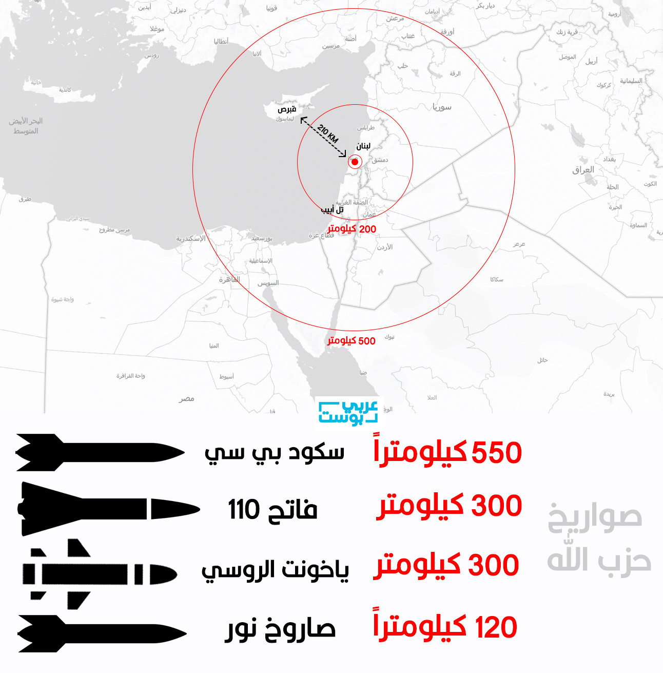 يملك حزب الله ضمن ترسانته الكبيرة من صواريخ أرض-أرض عالية الدقة ما يصل مداها إلى 250- 500 كيلومتر، في حين أن قبرص لا تبعد عن لبنان كثيراً، بنحو 210 كيلومترات.