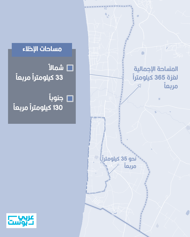 هذا يعني أن غالبية سكان غزة من أصل 2.2 مليون نسمة أصبحوا الآن محصورين في منطقة تبلغ مساحتها نحو نصف مساحة شرق القدس المحتلة التي تبلغ نحو 70 كيلومتراً مربعاً.