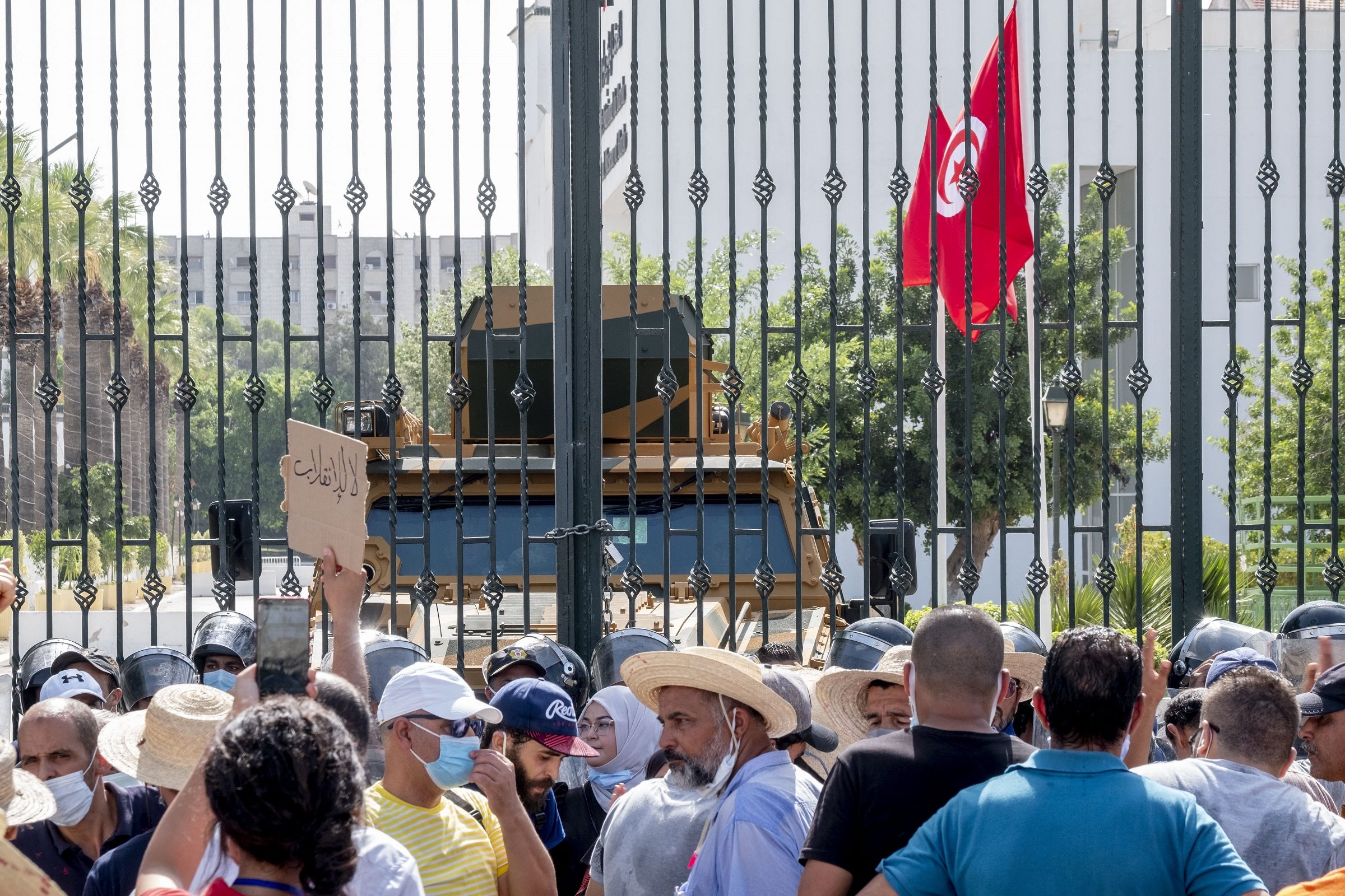 في شهر يوليو/تموز 2021، استعان الرئيس التونسي قيس سعيد بالجيش التونسي من أجل منع أعضاء مجلس النواب المنحل من دخول مبنى البرلمان، بعد قرارات الرئيس الاستثنائية بإقالة الحكومة وحل البرلمان والمجلس الأعلى للقضاء، في إجراءات لقيت انتقادات داخلية وخارجية للرئيس التونسي.