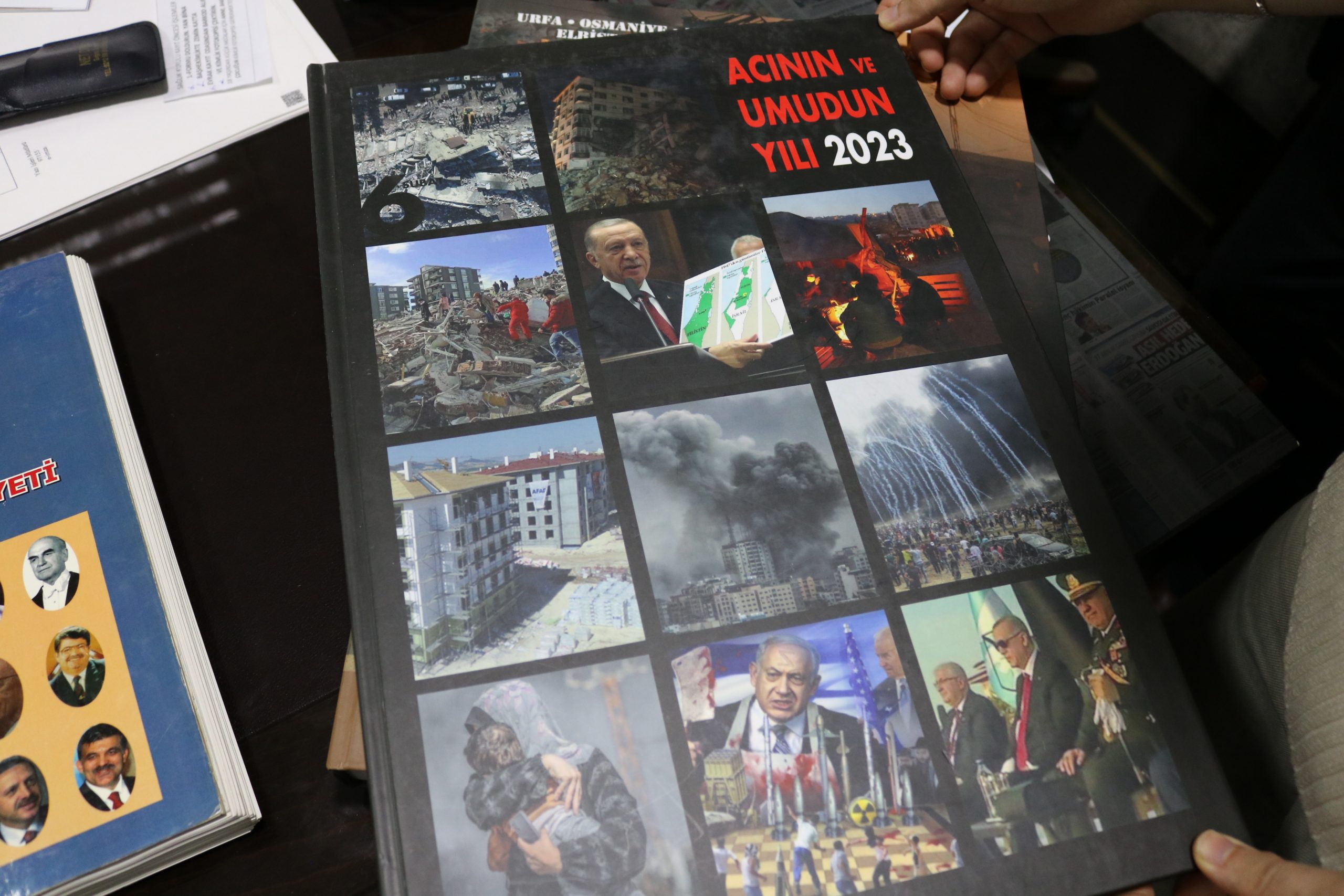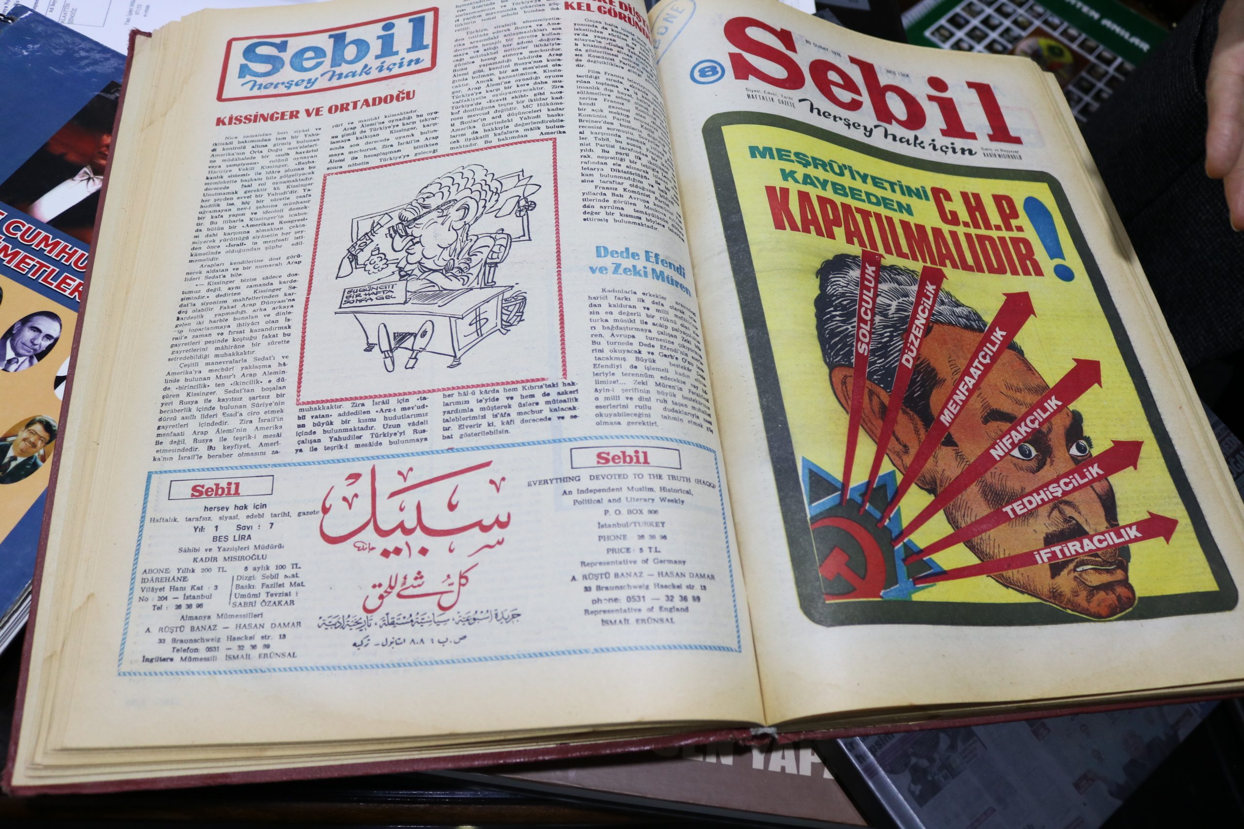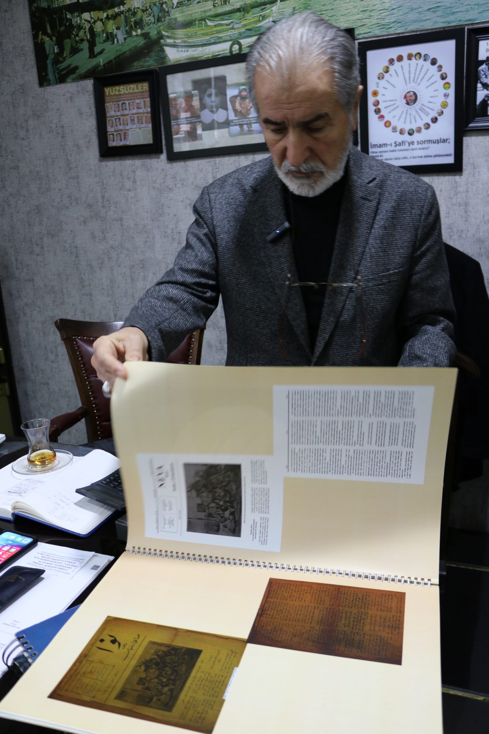 تتناثر على سطح مكتبه بعض من الكتب الكبيرة المفتوحة المليئة بصور مطبوعة لمثل تلك القصاصات والصور التي جمعها من وسائل إعلام تركية على مدار عقود، يوثق العالم من زاويته الخاصة، ويرى في مهمته هذه واجباً مقدساً.