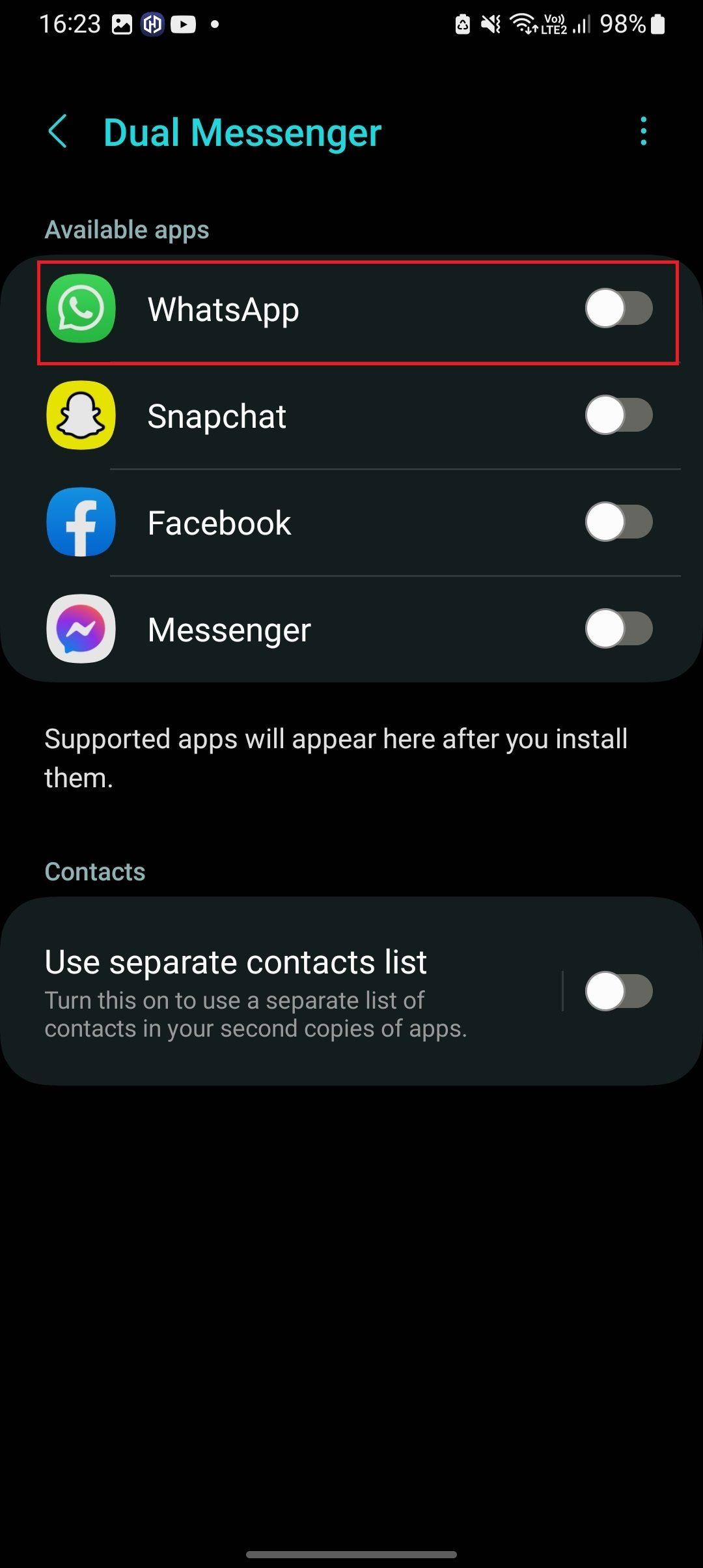 لكن في حال أردت أن تشغل أكثر من حساب من هذا التطبيق على نفس الهاتف، لكي يصبح المركز الرئيسي لجميع الأرقام الخاصة بك أو بالعمل، يتعين عليك تنزيل بعض التطبيقات، والقيام ببعض الحيل للحصول على هذه الخاصية.