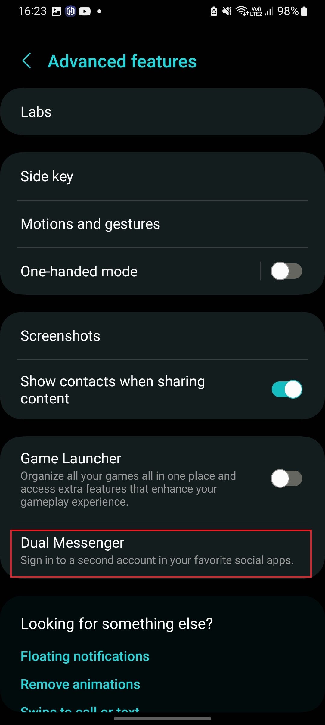 - هواتف سامسونغ: المُرسِل المزدوج: افتح الإعدادات، ثم توجه بعدها إلى الميزات المتقدمة، ثم اضغط على المرسل المزدوج، اختر بعدها التطبيق ، ثم اضغط زر التفعيل.