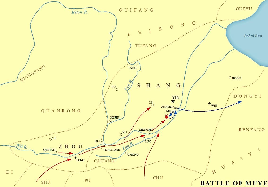 والتي حارب فيها جيش قبائل تشو بحوالي 50 ألف جندي، ضد أكثر من 500 ألف جندي من جنود شانغ، الذين كانوا يتقلدون السلطة آنذاك، بالإضافة إلى 170 ألف من العبيد المسلحين.