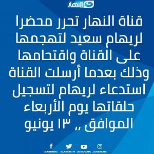 “النهار” تتهم ريهام سعيد باقتحام مبناها وتحرر ضدّها بلاغاً.. والإعلامية المصرية ترد (فيديو)