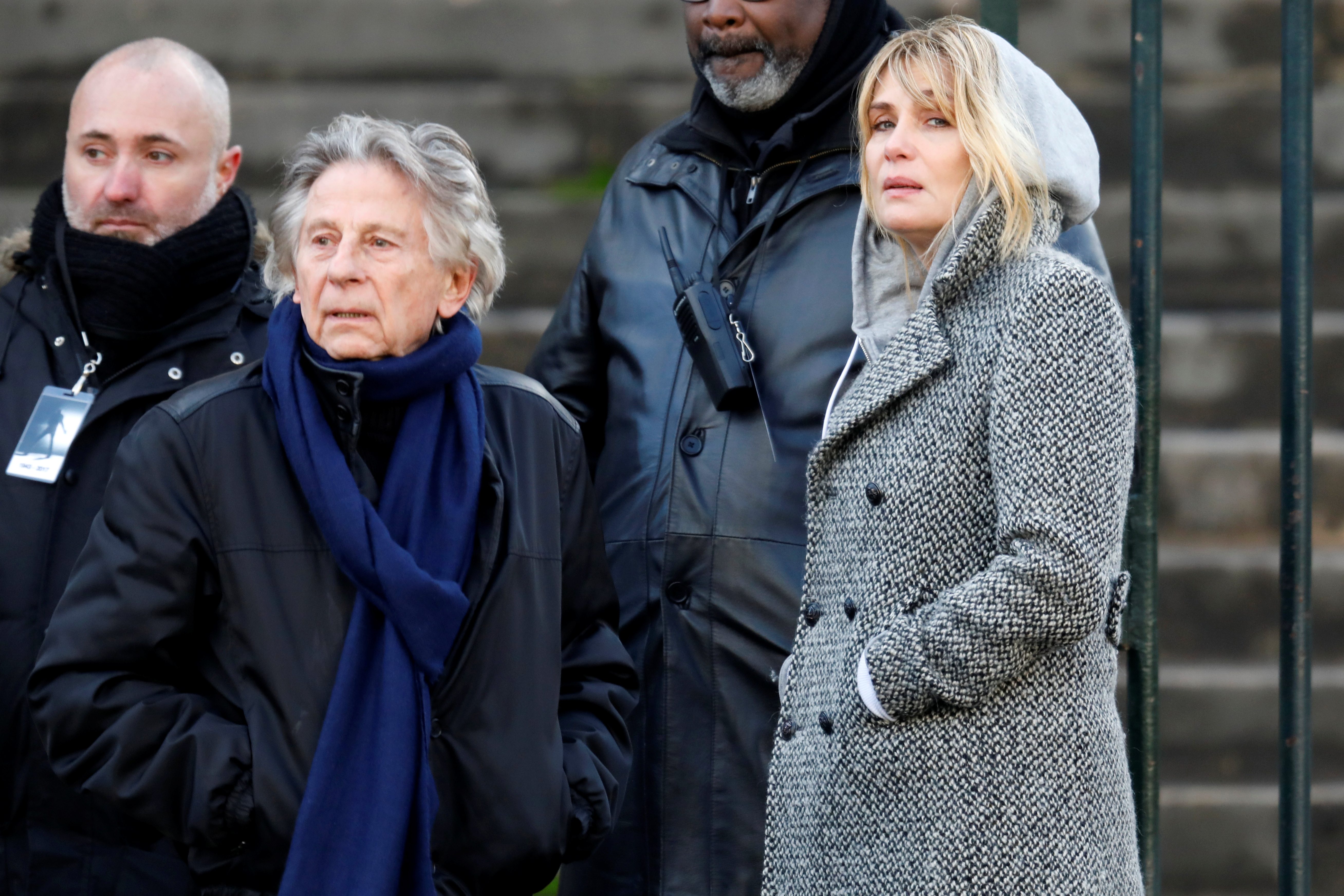Film director Roman Polanski and Emmanuelle Seigner arrive at the Madeleine Church to attend a ceremony during a 'popular tribute' to late French singer and actor Johnny Hallyday in Paris, France, December 9, 2017. REUTERS/Charles Platiau