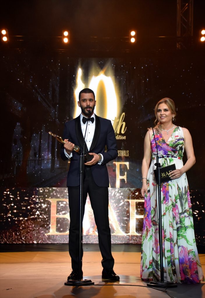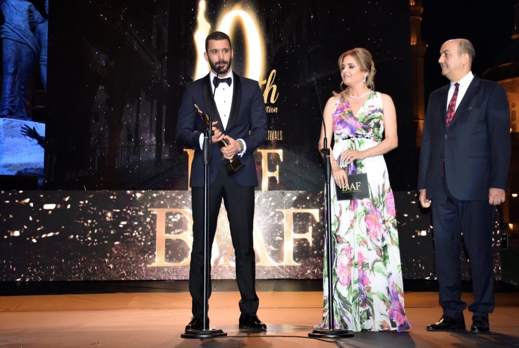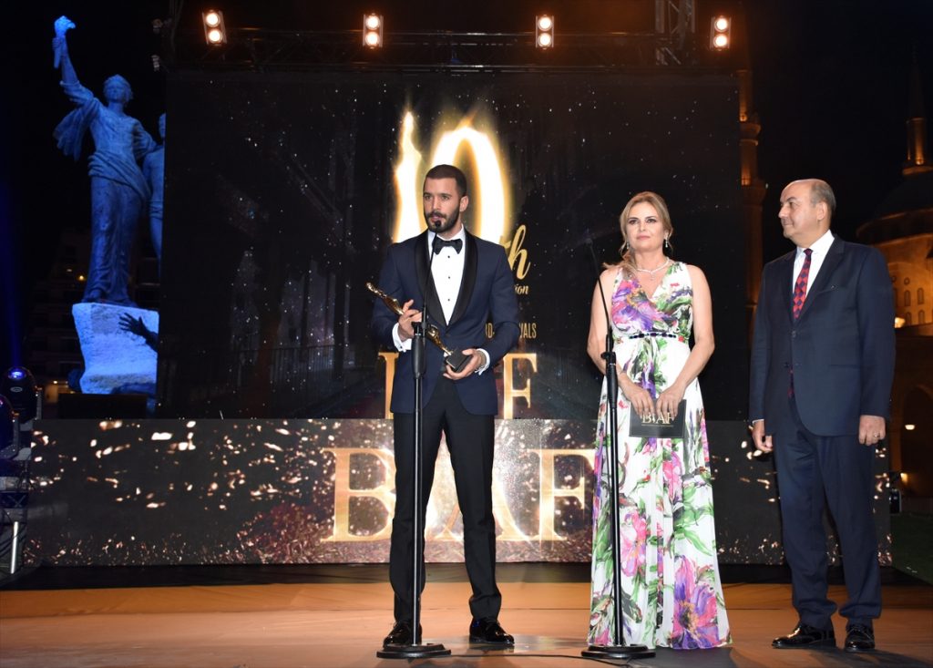 تسلّم الممثل التركي باريش أردوتش جائزة مهرجان “بياف”، كأفضل ممثل عالمي، من السفير التركي لدى لبنان، هاكان تشاكيل.