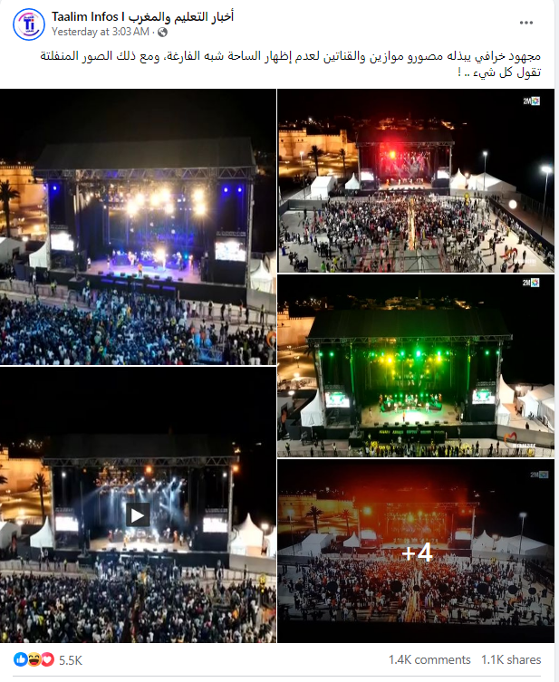 في المقابل علق عدد من رواد مواقع التواصل الاجتماعي على زوايا التصوير التي يُعرض بها الجمهور الحاضر على القنوات العمومية، والتي تظهر عدداً كبير من الجمهور على عكس الحقيقة.