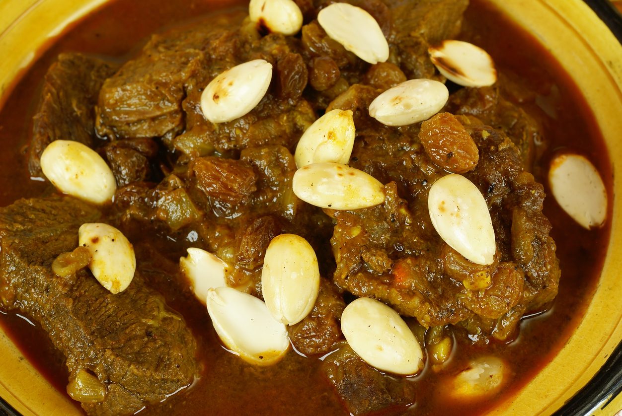 ويتكون هذا الطبق اللذيذ من اللحوم المطهية في قدر “الطاجين” يضاف إليها المكسرات والفواكه المجففة والزبيب والتوابل، وهو ما يمنحه طعماً مميزاً وغريباً في آن معاً.