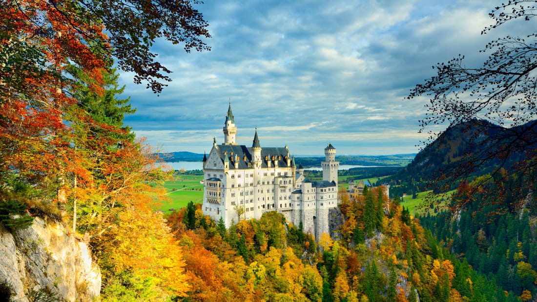 نويشفانشتاين قلعةٌ خياليةٌ تشبه قلعة “Sleeping Beauty” في ديزني لاند، ولكن بخلفيةٍ من جبال الألب المكلَّلة بالثلوج والسهول البافارية ممتدة أسفلها.
