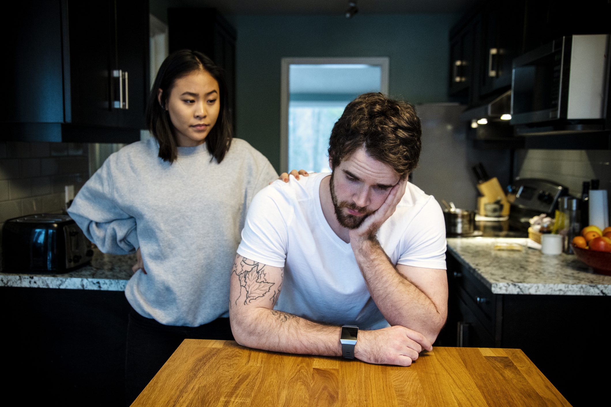 ومن النادر جداً أن يكون الخطأ خطأه. يتحمل الشركاء غالباً حمل توتر العمل المجلوب معهم إلى المنزل.