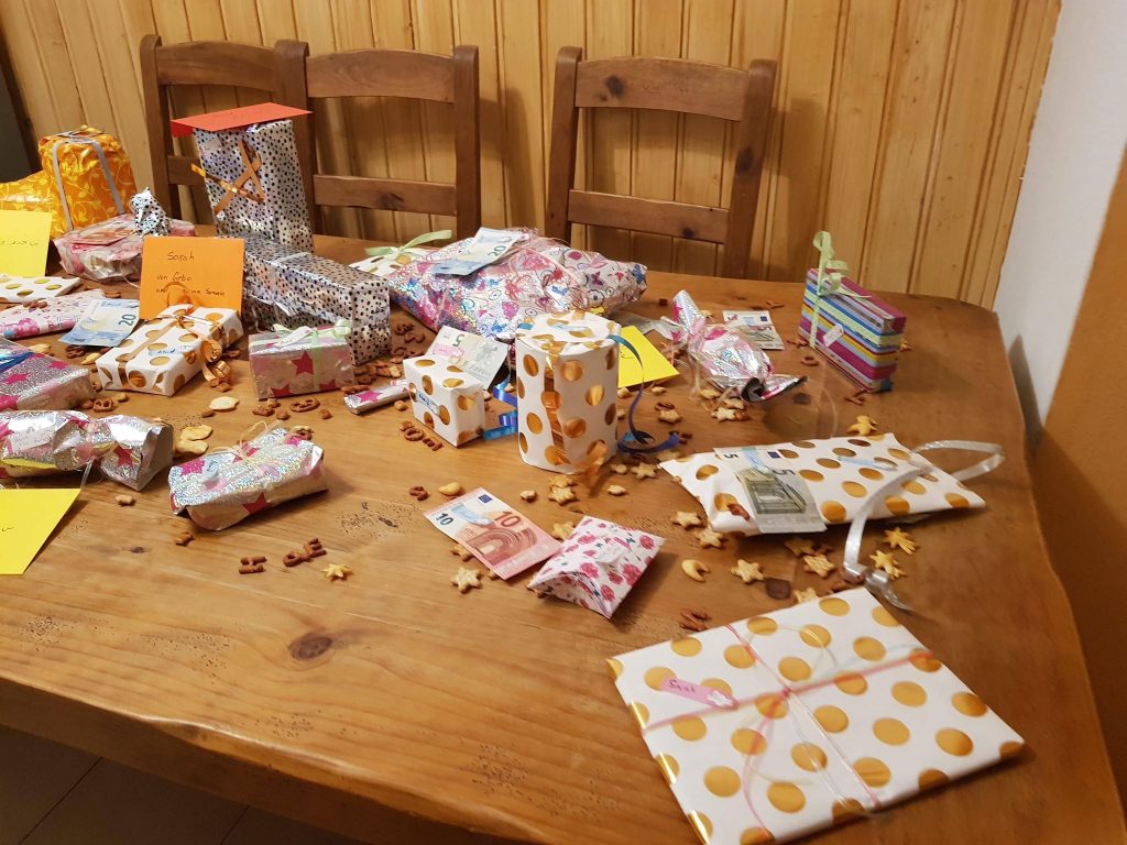 مع دخولهم للمدرسة قررنا أن يكون الأمر أكثر ابتكاراً، وكما ذكرت سابقاً، فالفقرة الأصعب في الاحتفال بالكريسماس هي فقرة التحدث عن الهدايا، وعدم وجود الكثير من الأهل لدينا هنا، فبالتالي قلة الهدايا المقدمة لديهم.