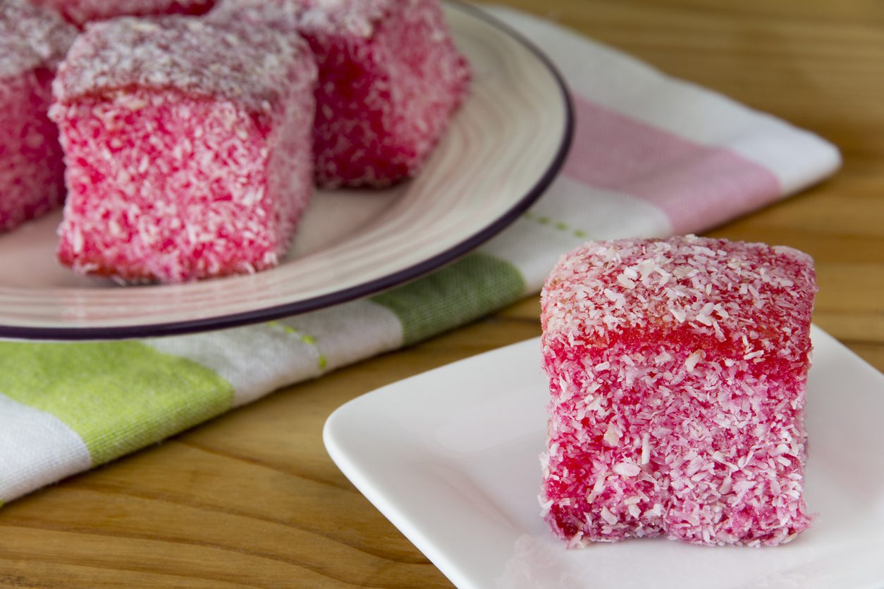 تعتبر حلوى كيك Pink Lamingtons واحدة من أشهر الحلويات التي تباع بكثرة في أستراليا ونيوزيلندا، وقد سُميت بهذا الاسم تيمناً بالبارون لامينجتون الذي حكم ولاية كوينزلاند الواقعة شرق أستراليا بين عامي 1896 و1901.