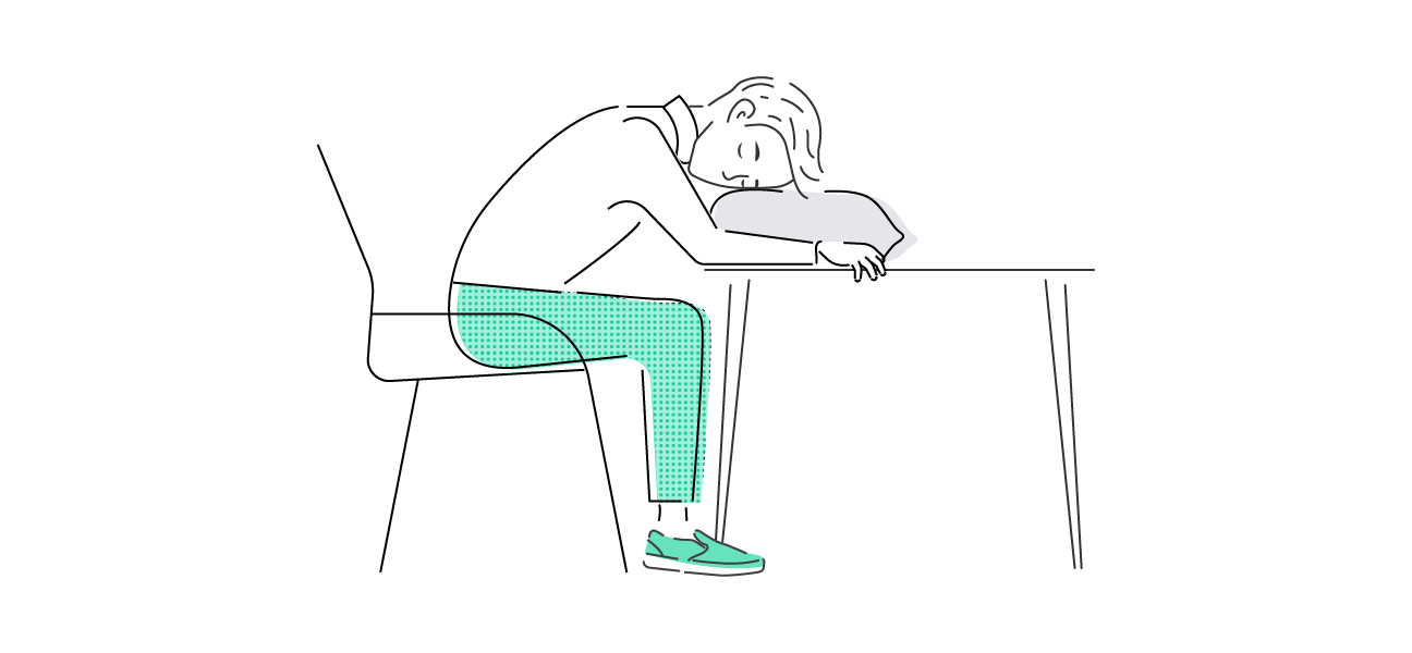 - ضع رأسك على ساعديك أو على وسادة فوق الطاولة.