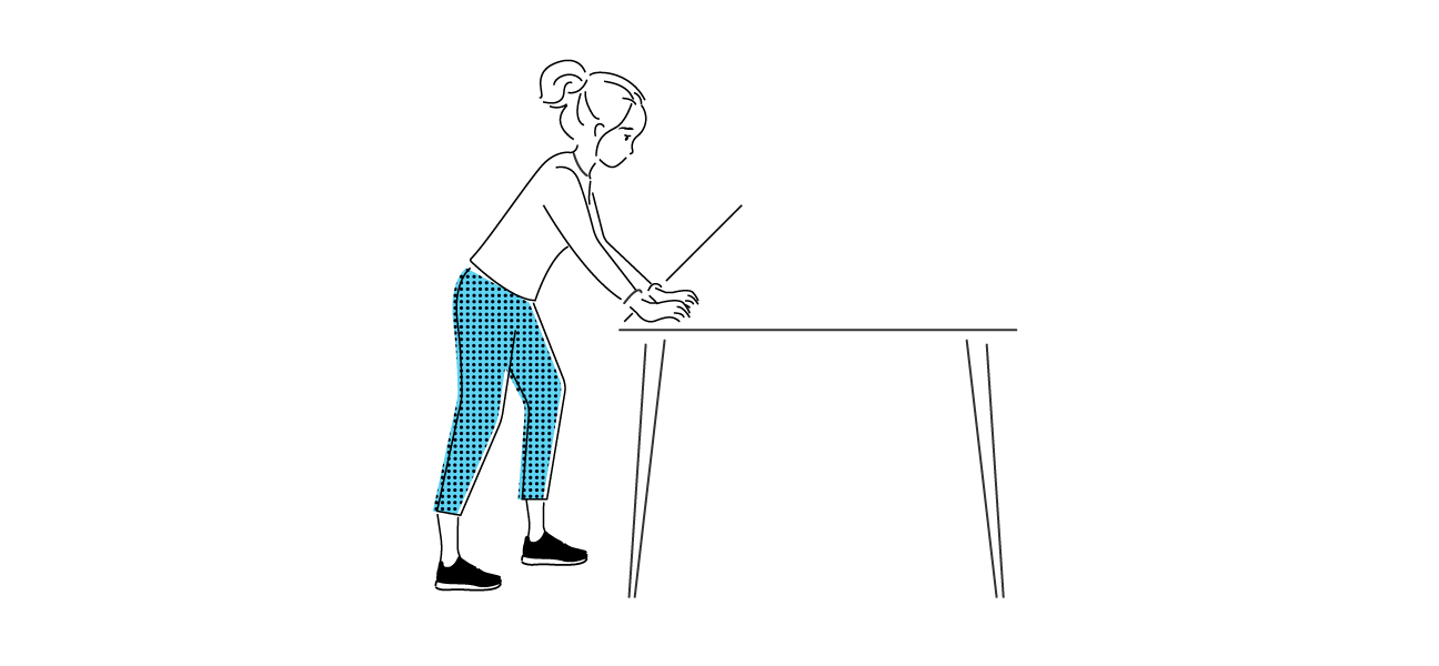 - ضع مرفقيك أو يديك على قطعة الأثاث، وحافظ على استرخاء رقبتك.