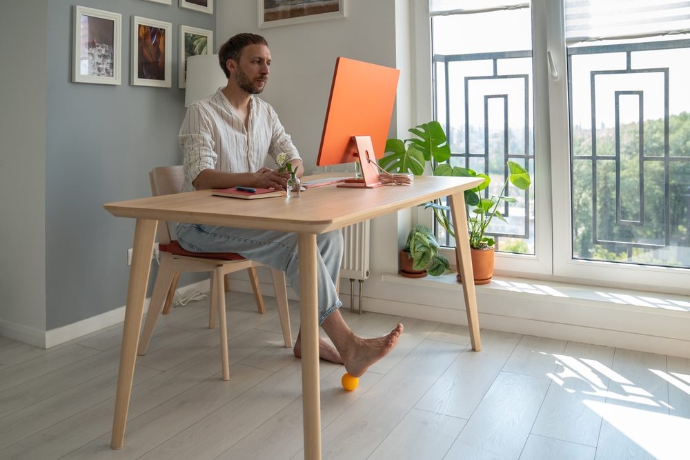 رجل يحاول تحسين الدورة الدموية في مكتبه- المصدر: shutterstock